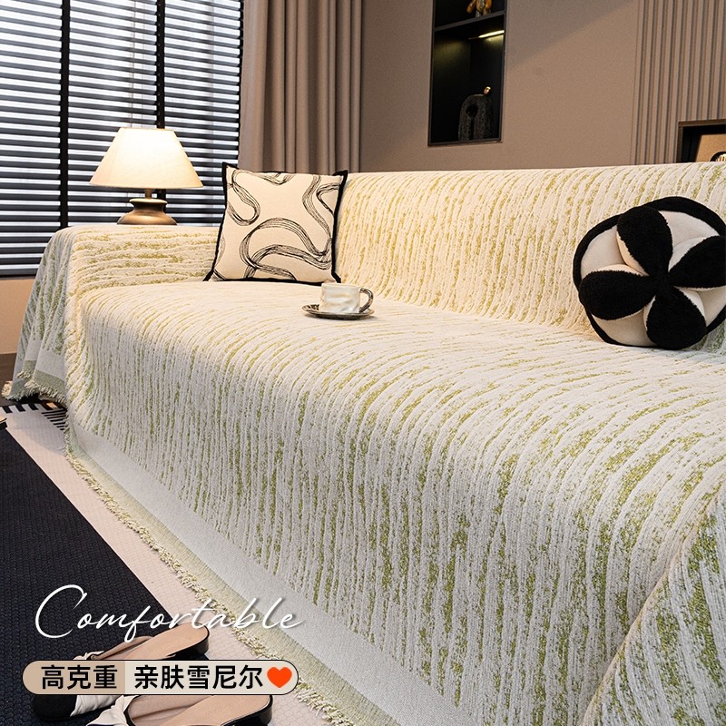 雪尼尔沙发巾现代简约沙发套罩四季通用靠背盖布绿色防猫抓红色