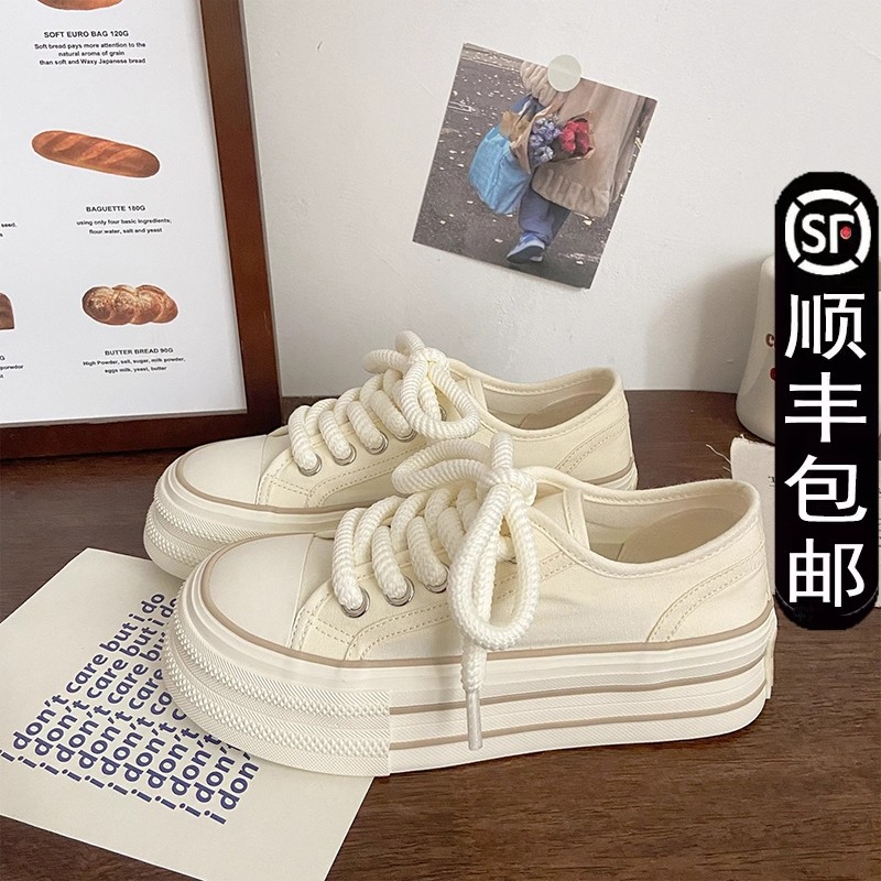 夏季厚底帆布鞋女薄款奶油新款ins潮小众韩版大头松糕学生小白鞋