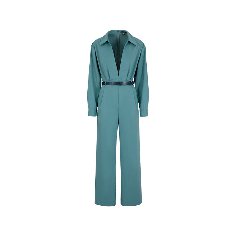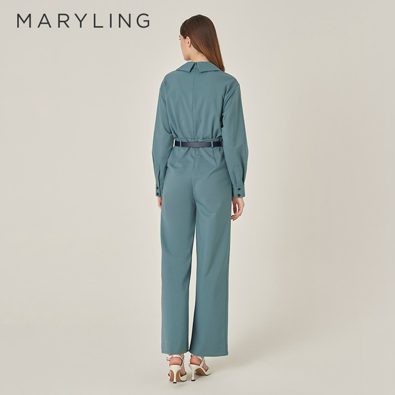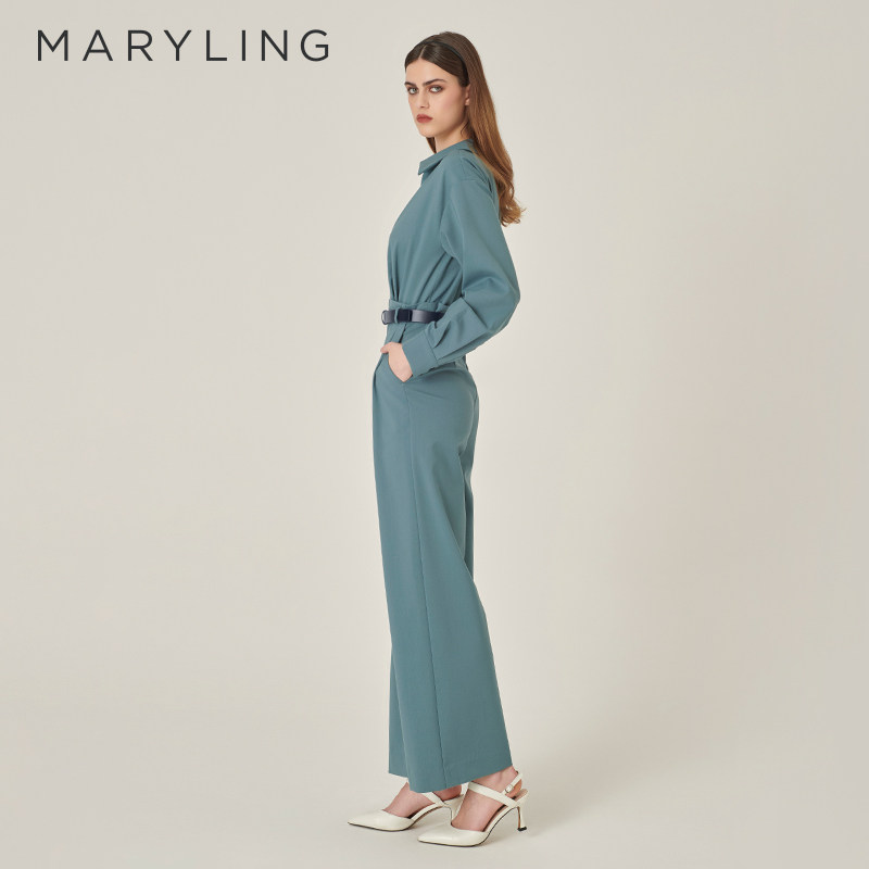 MARYLING玛俪琳秋新品雾蓝色深V衬衫领阔腿连体裤A1EFW57000