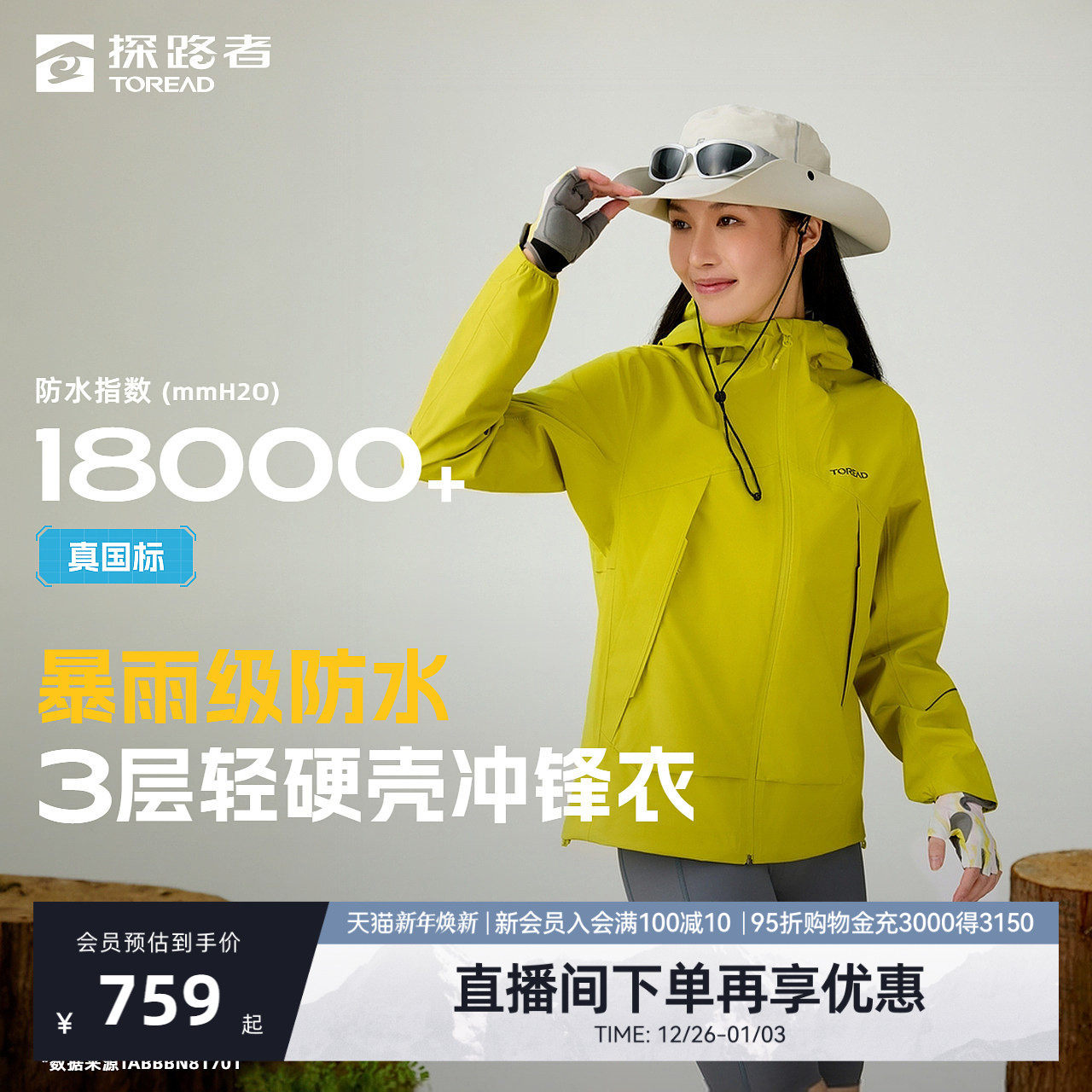 【探极】探路者冲锋衣男户外徒步登山硬壳防水透气防风外套女
