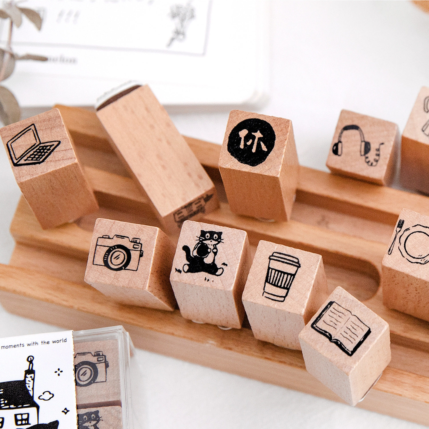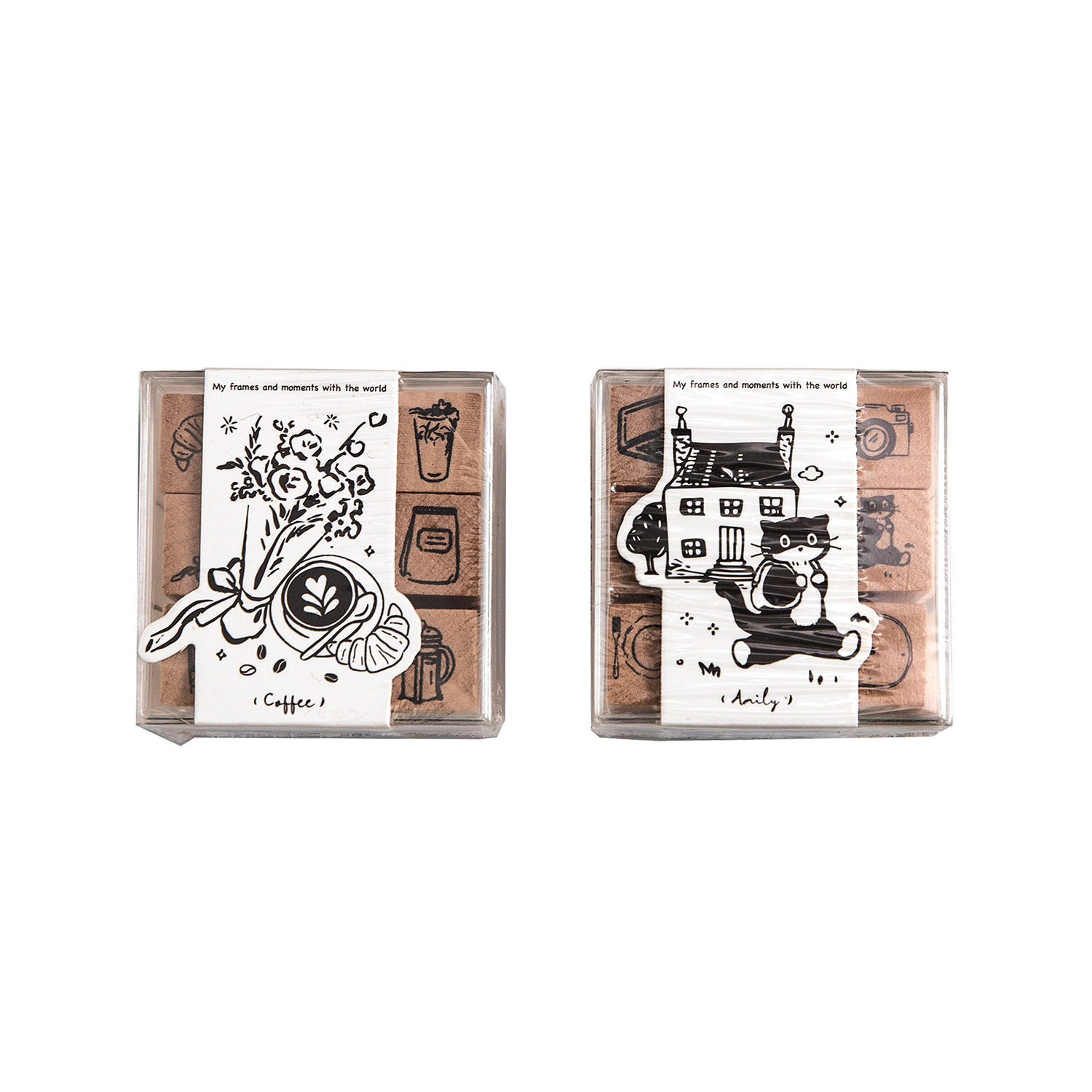 我与世界的帧帧瞬间系列mini印章9枚入 猫咪咖啡手帐装饰素材印画