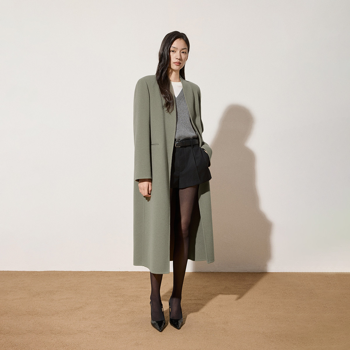 反季双面羊毛大衣女中长款2025新款西装领双排扣宽松显瘦毛呢外套