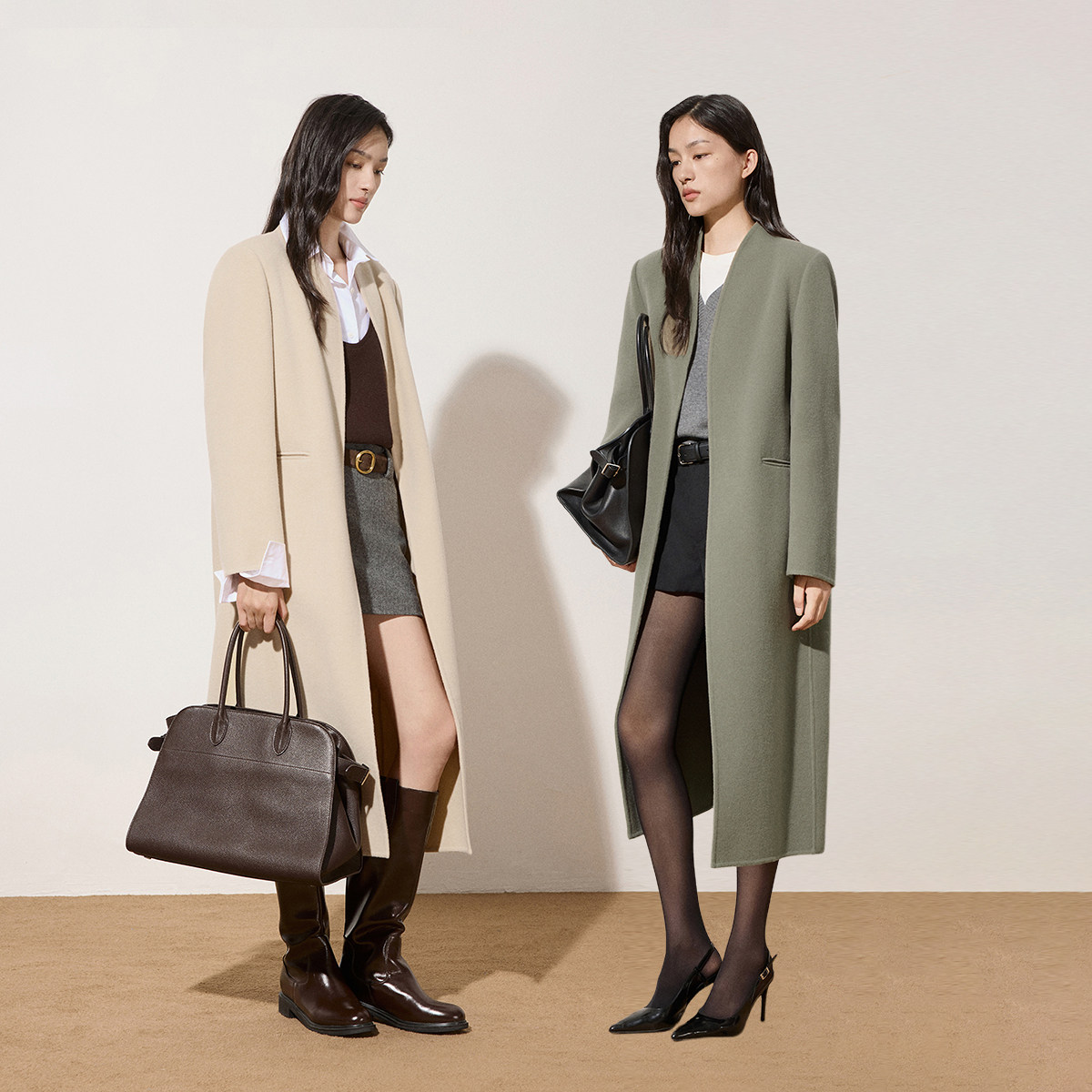 【所有女生的衣橱直播间】航邦祺韩系双面经典四粒扣中长款大衣