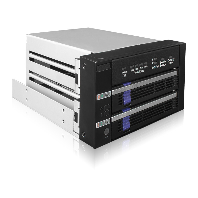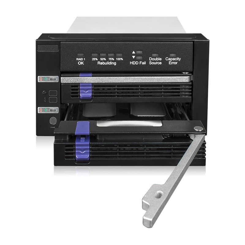ICY DOCK MB901SPR-B R1 3.5英寸SATA硬盘抽取盒RAID1磁盘阵列适用于工控机两个 5.25" 光驱位可安装操作系统