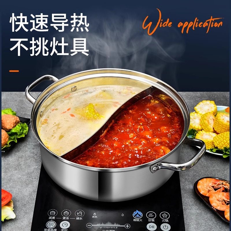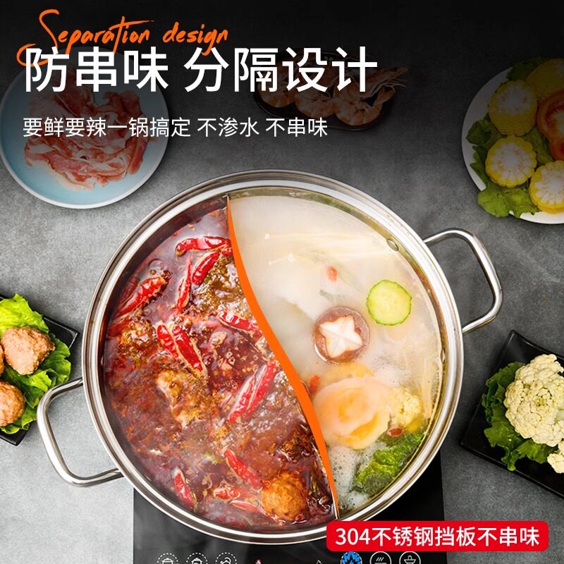 鸳鸯锅火锅锅家用不锈钢电磁炉专用加厚涮锅火锅盆锅具炉灶一锅