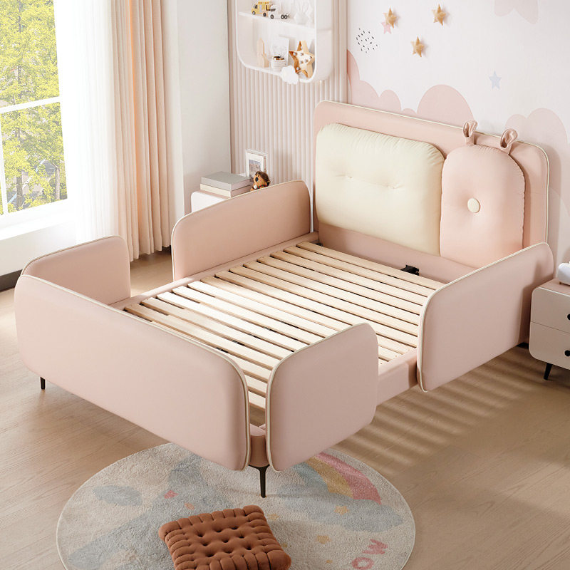 喜临门儿童床女孩男孩卧室实木软包床1米2小户型房单人床小熊面包