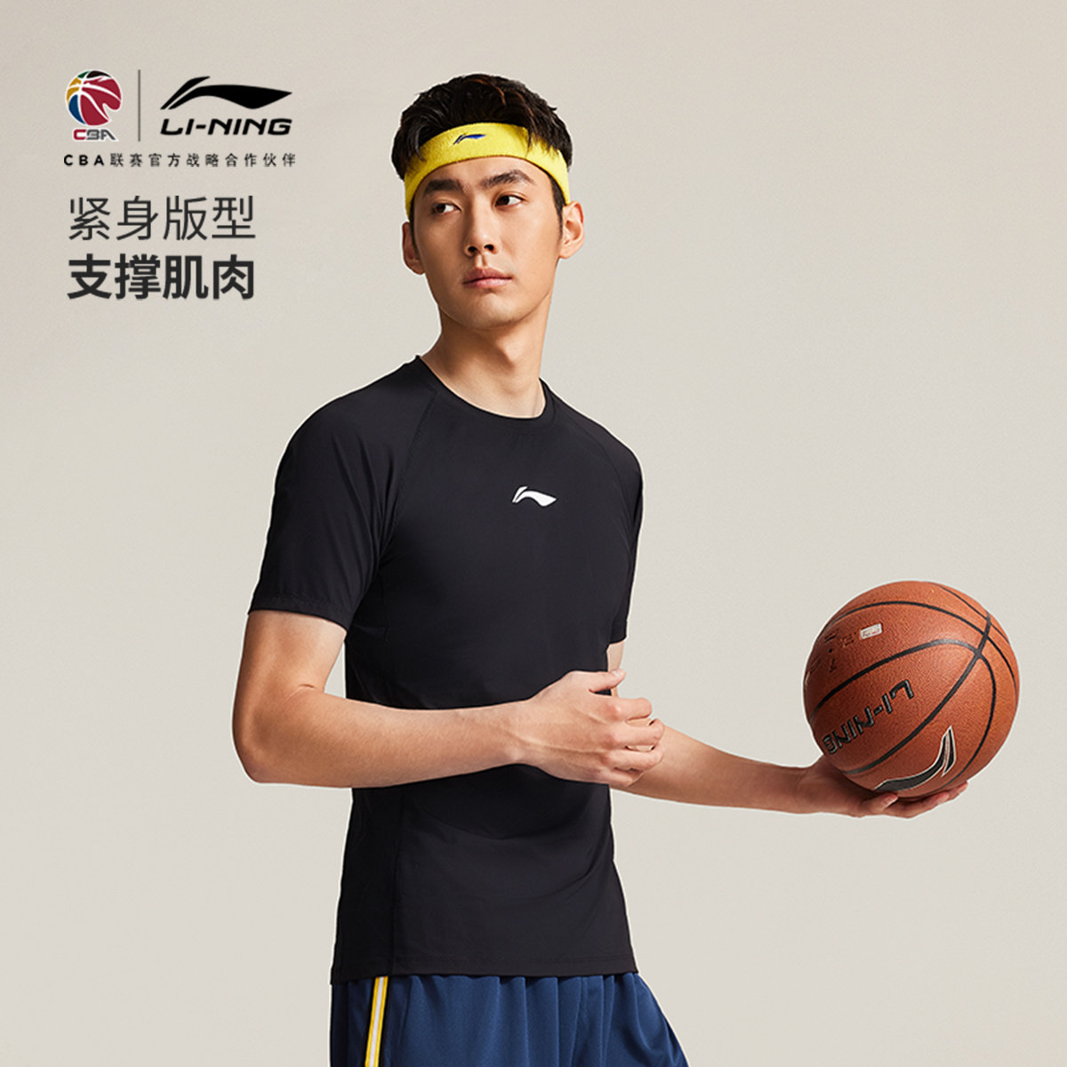 李宁CBA专业篮球系列健身衣男士官方新款夏季弹力紧身针织运动服