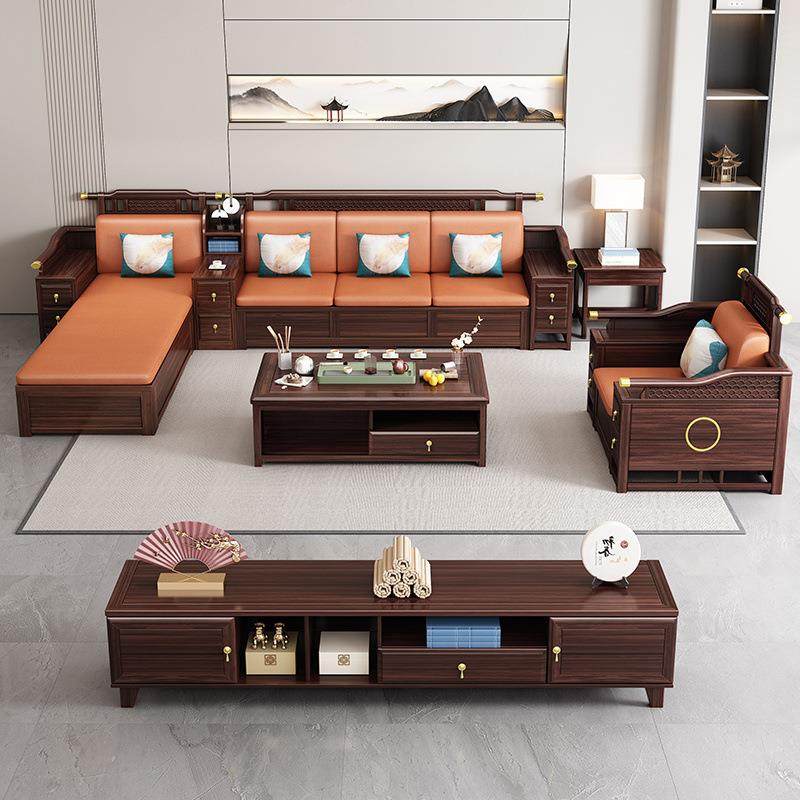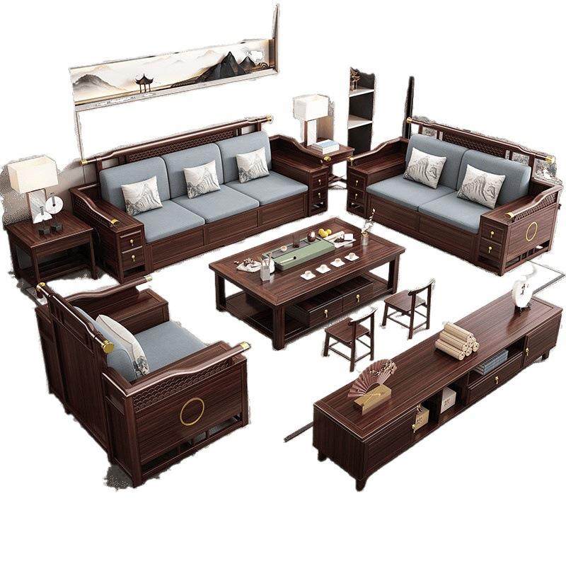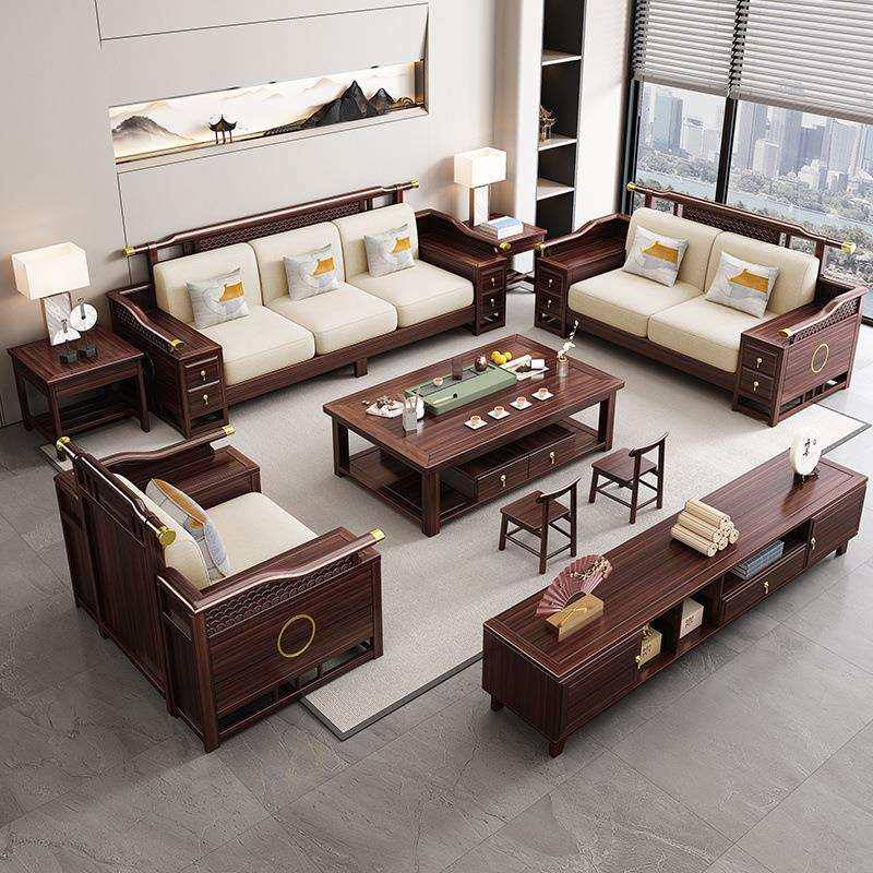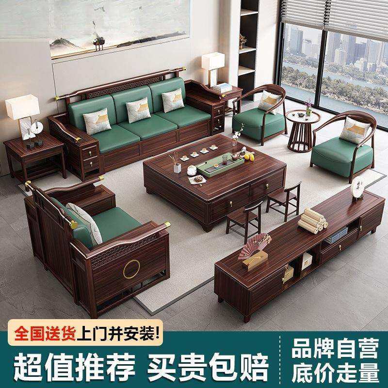 新中式乌金木实木沙发客厅组合冬夏两用禅意别墅现代大小户型家具