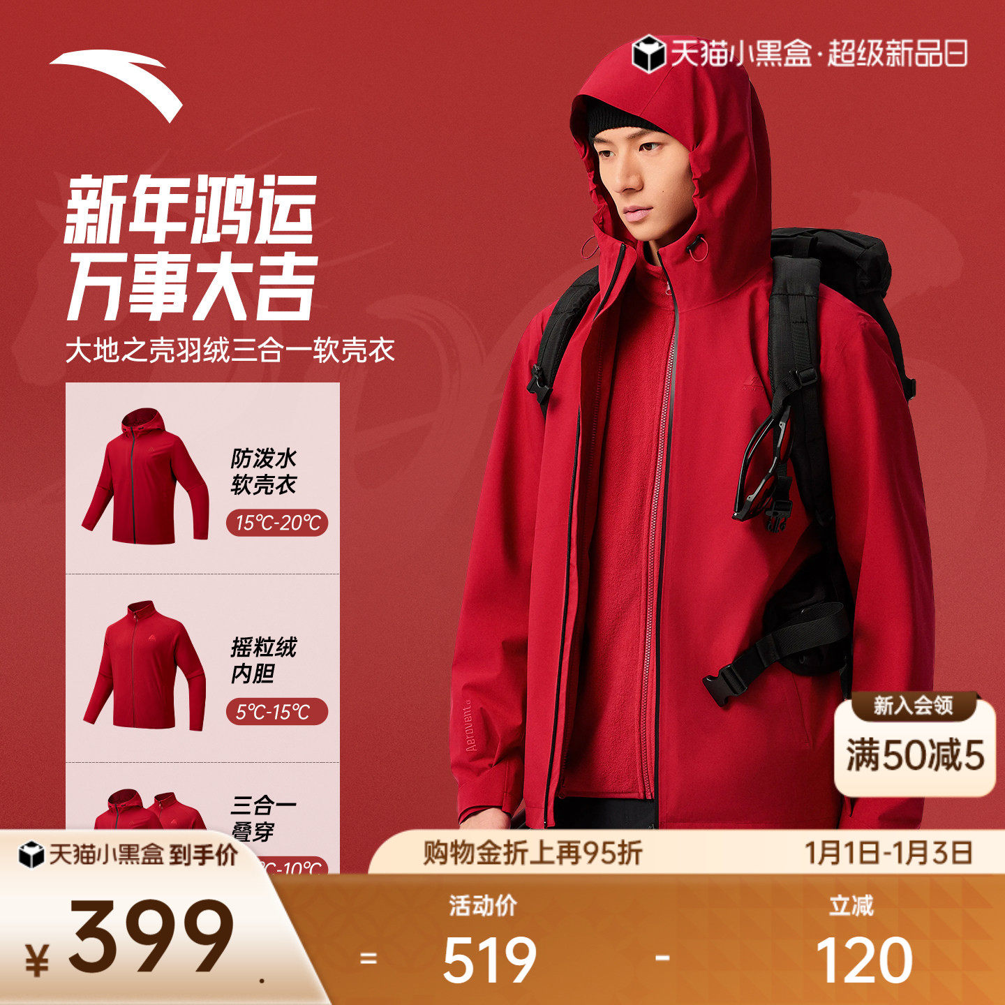 安踏新年三合一冲锋衣丨大地之壳水壳3.0户外防水夹克男士登山服