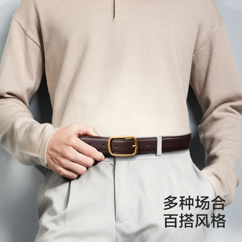 海澜之家男士针扣皮带真牛皮腰带年轻人商务百搭新款西装裤带正品
