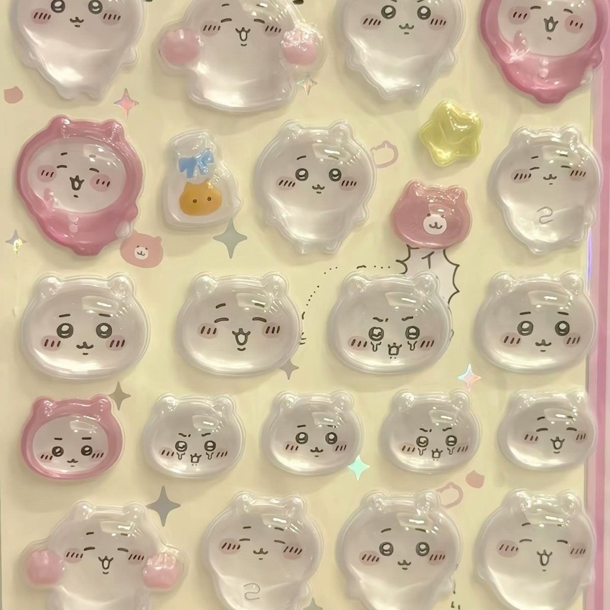 新款跨境可爱吉一卡娃人物PVC水晶立体贴纸乌萨期小八吉一贴纸