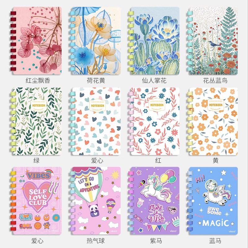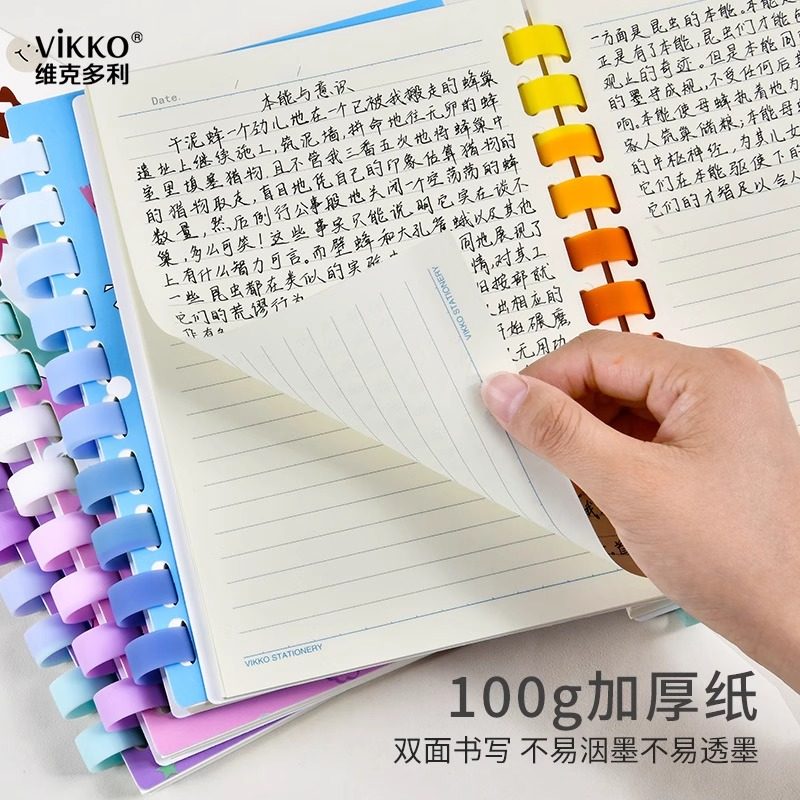 维克多利金色浆果系列横线款胶圈软硅胶活页本初高中生学生记事本必备加厚不硌手小清新随身笔记本