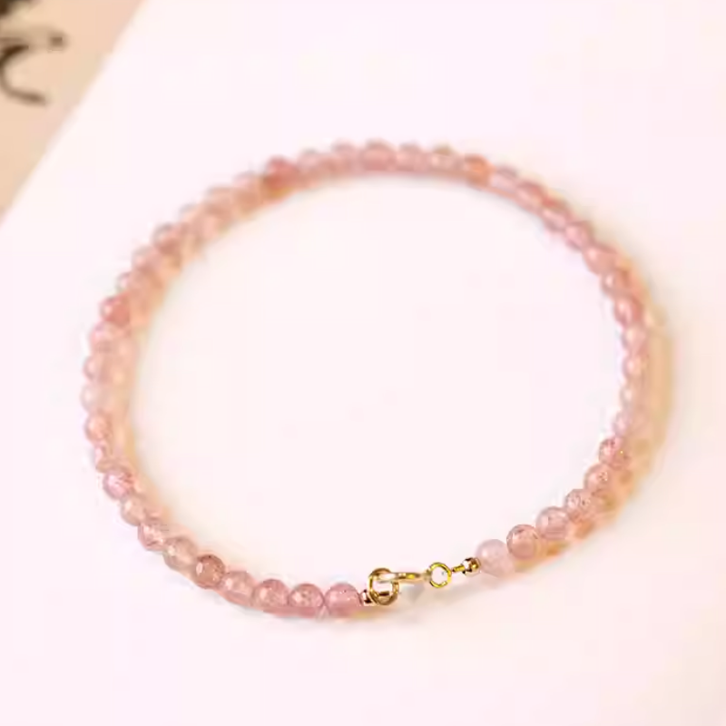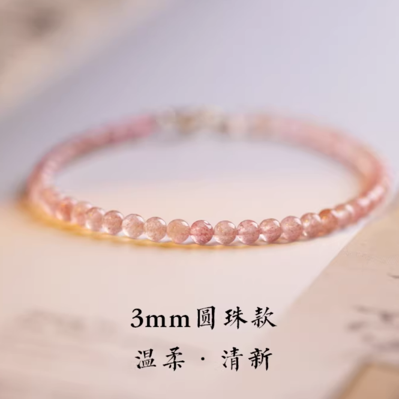 天然草莓晶手链夏女生桃花甜美简约百搭3mm极细水晶手串饰品