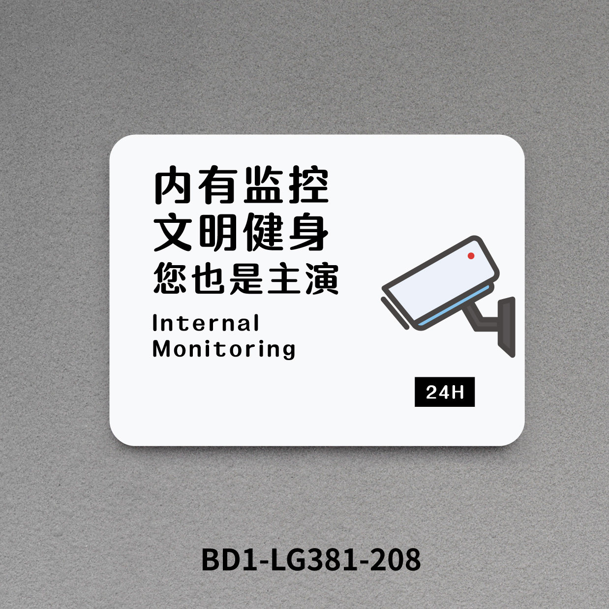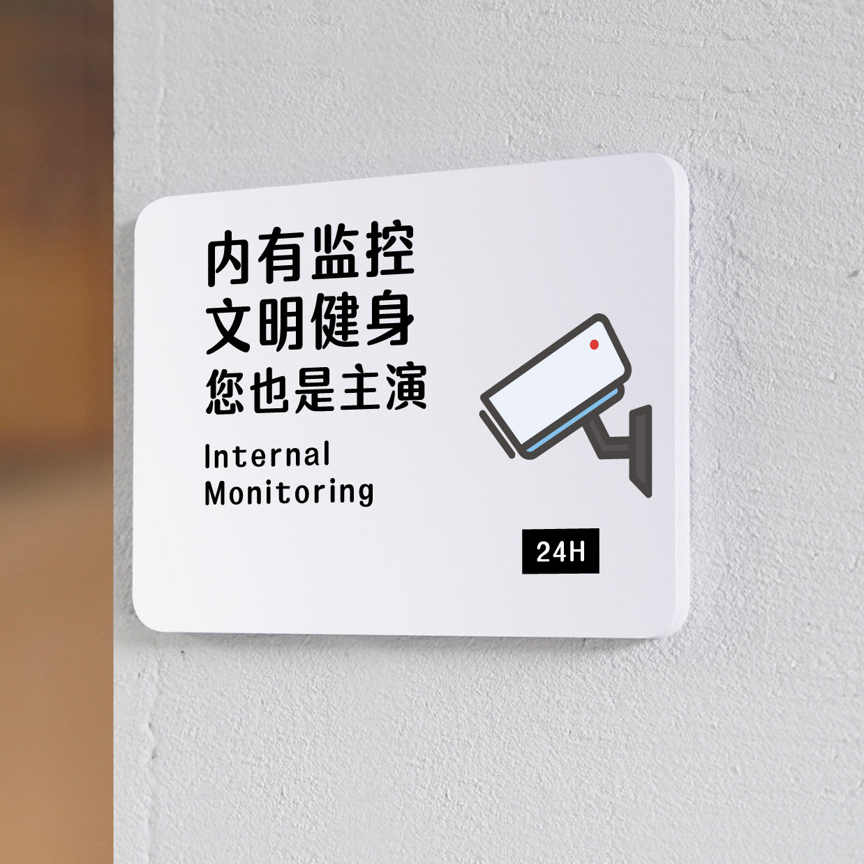 内有监控文明健身温馨提示牌健身房里有监控摄像头标识牌器材使用后请放回原位健身俱乐部标语展示牌门牌墙贴
