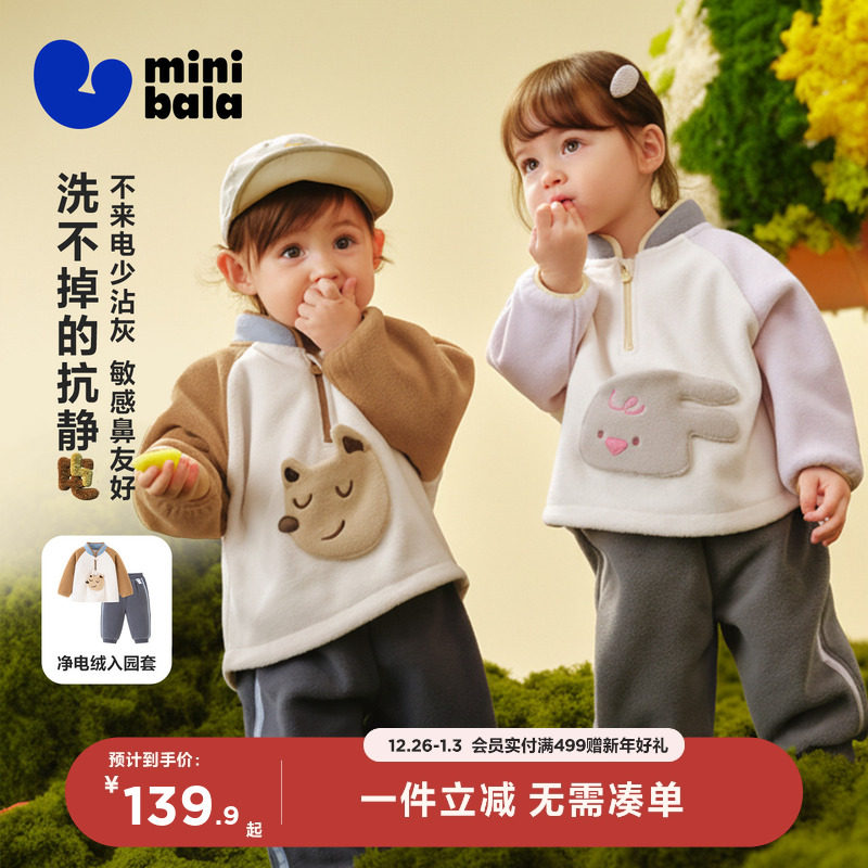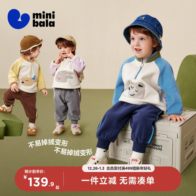 迷你巴拉巴拉男女童抗静电长袖套装摇粒绒柔软保暖两件套2025冬新