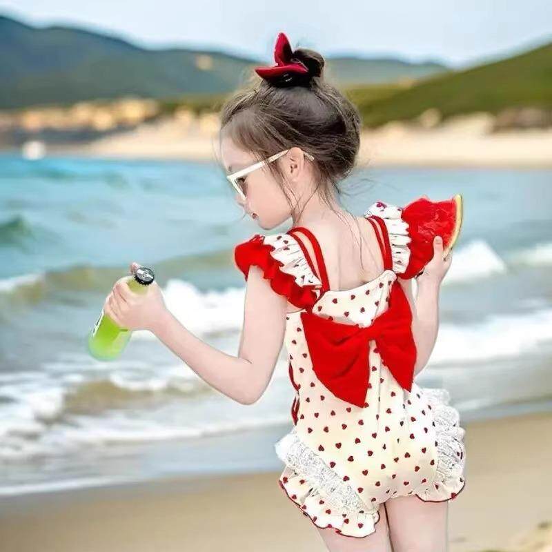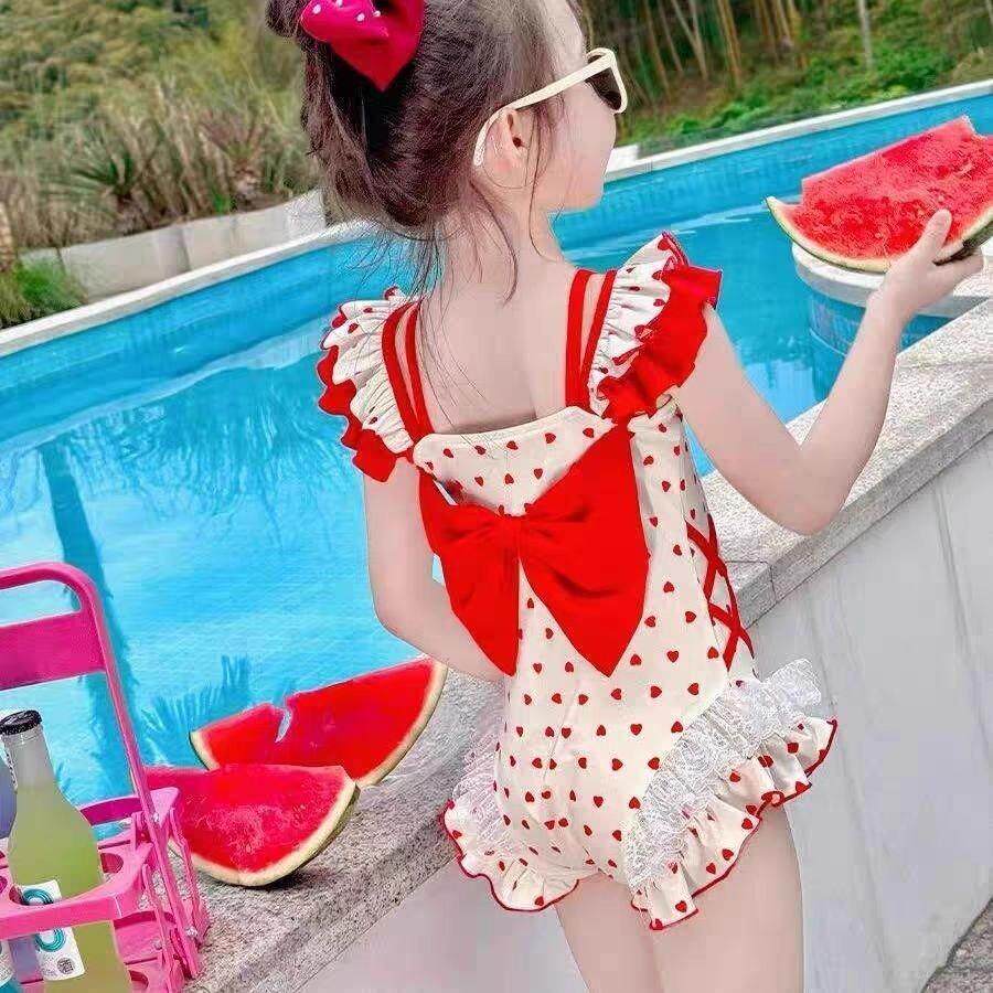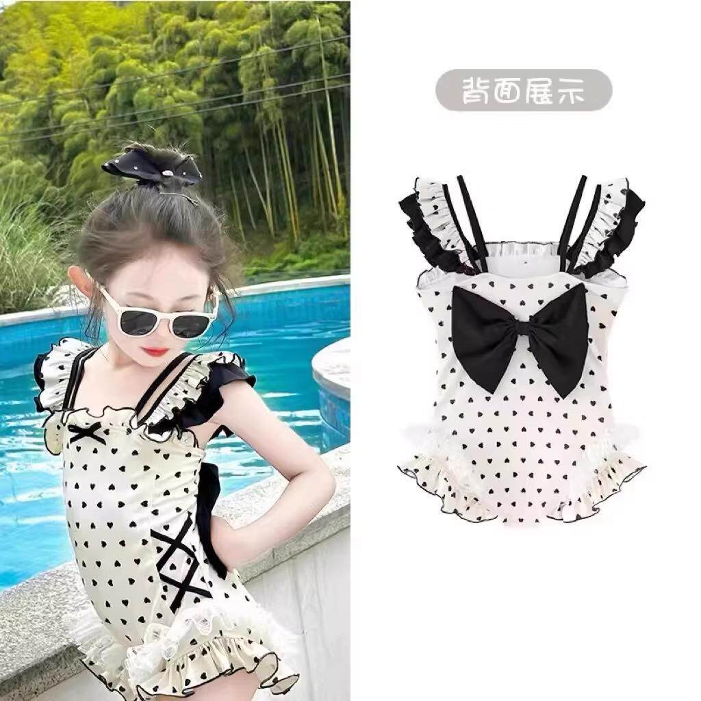 女童泳衣新款夏季儿童泳装小女孩洋气连体衣爱心蝴蝶结游泳衣