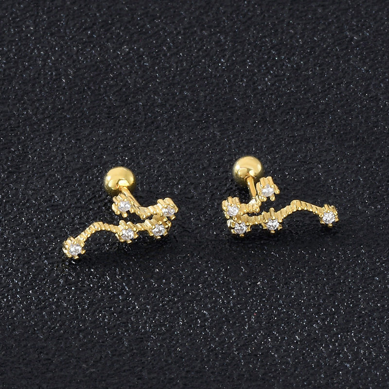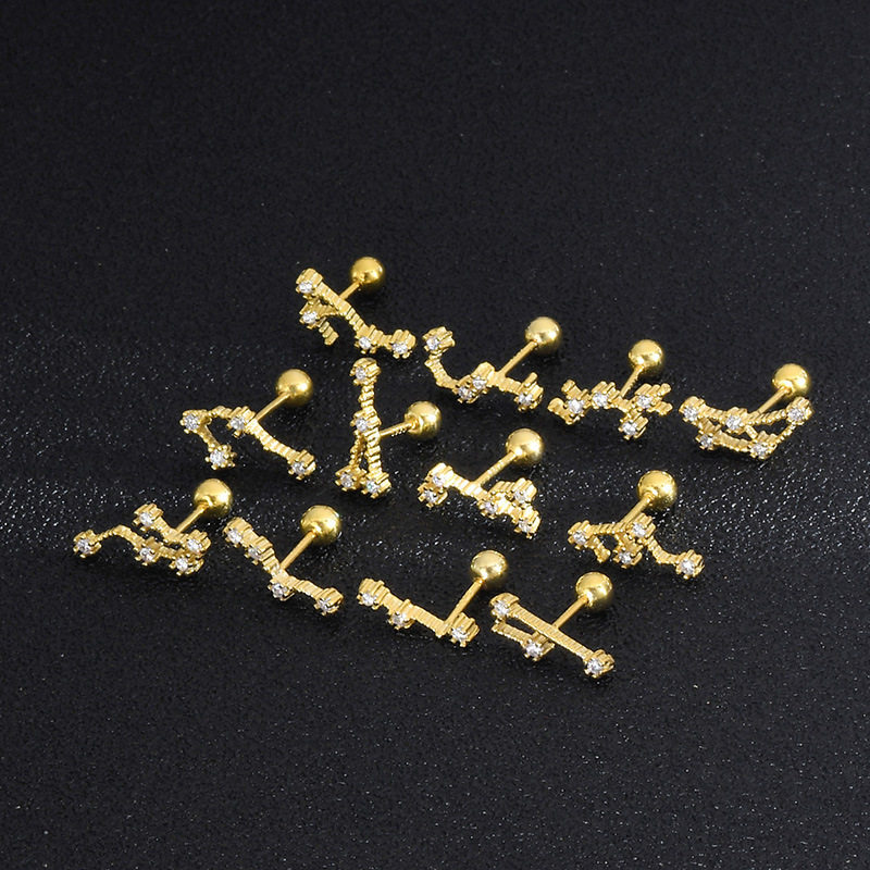 s925银耳骨钉女韩版小清新镶钻十二星座扭螺丝甜美气质时尚耳饰