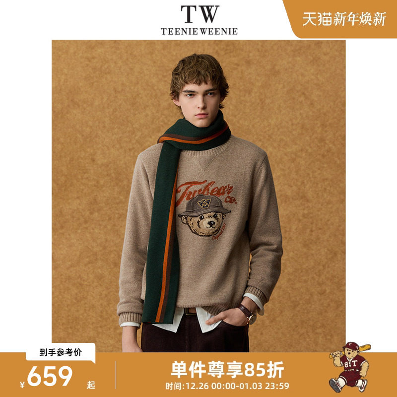 Teenie Weenie小熊男装脸熊提花圆领复古保暖休闲毛衣上衣