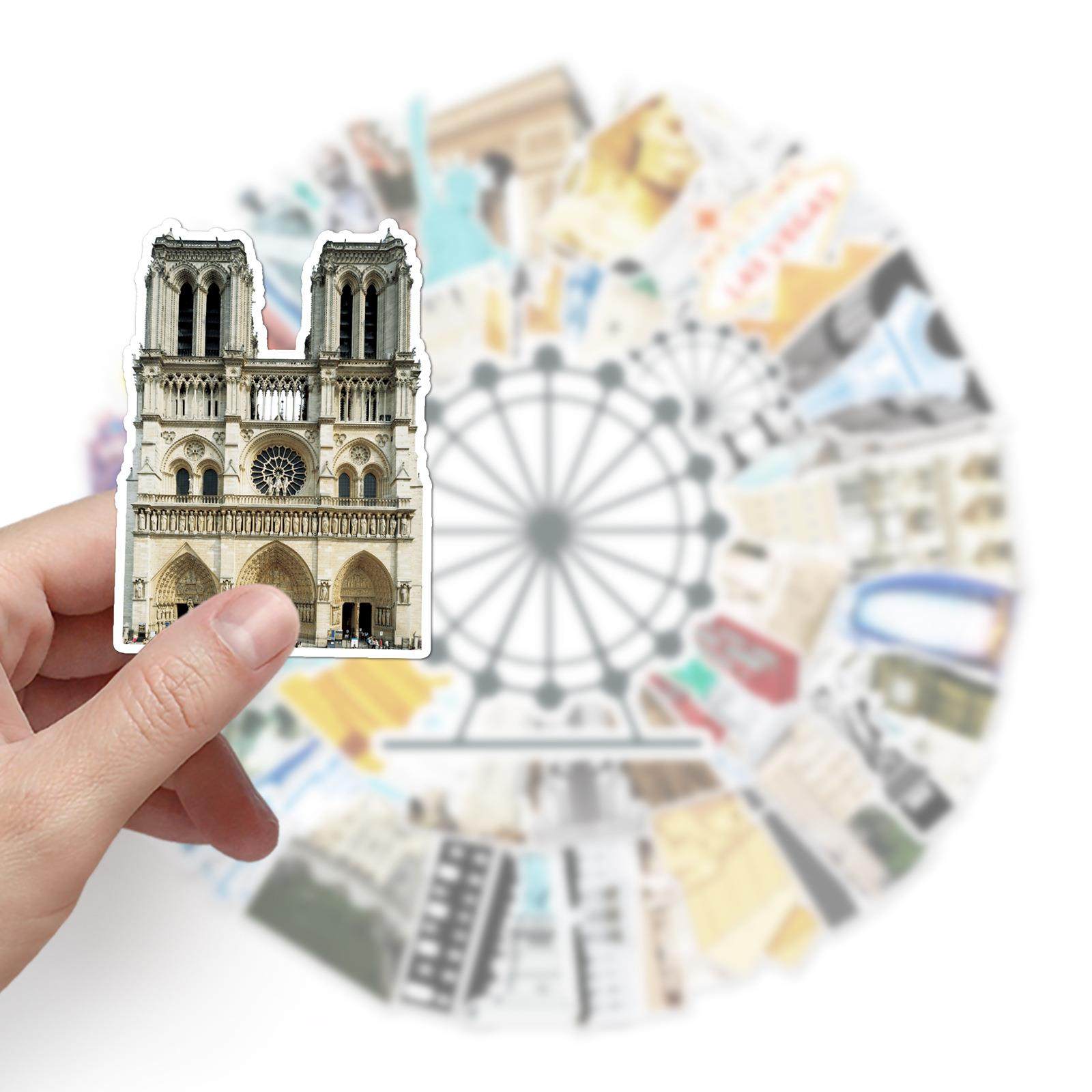 64张地标建筑涂鸦创意笔记本电脑自行车滑板车汽车防水装饰贴纸