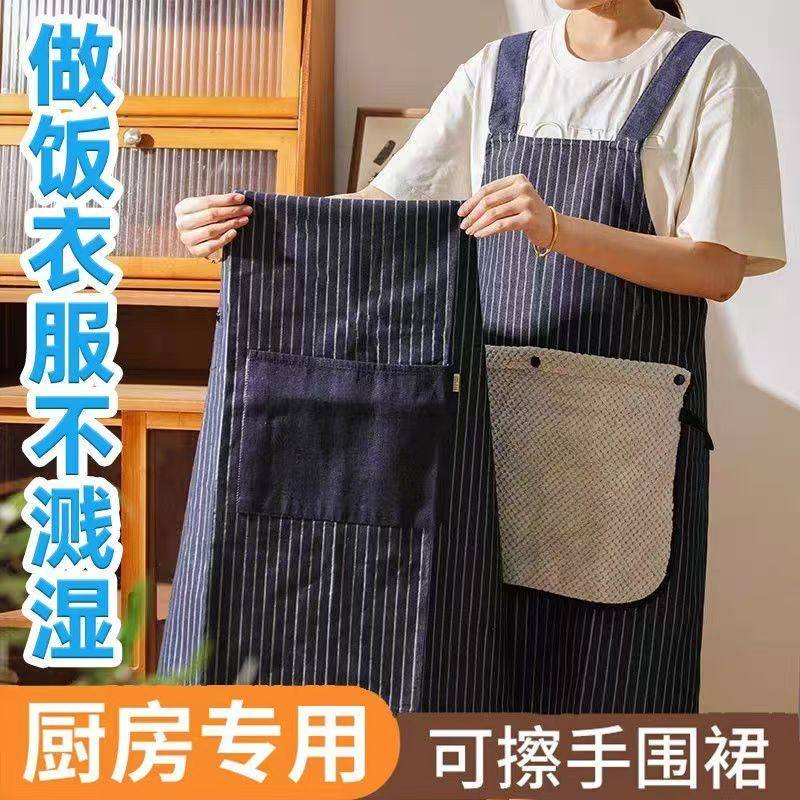 高颜值可拆卸防油擦手巾围裙厨房防水加厚2025做饭交叉厨师后背