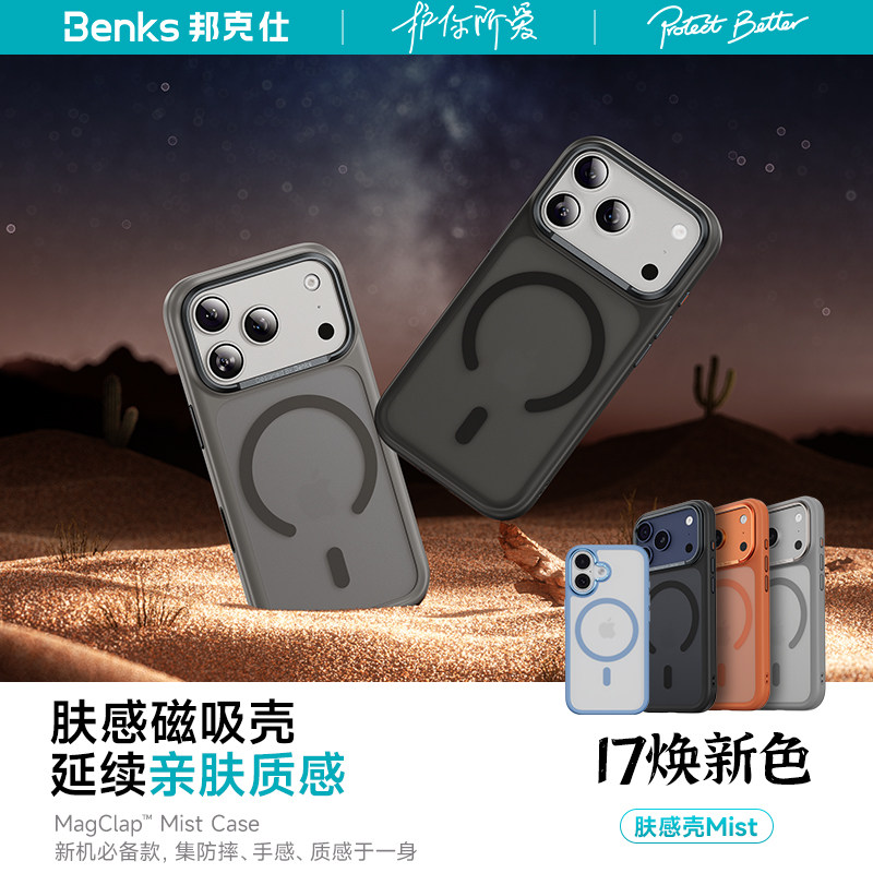 Benks适用iPhone17promax手机壳苹果17pro新款磨砂防摔air磁吸保护por套17pm相机按键全包ip简约高级感外壳p