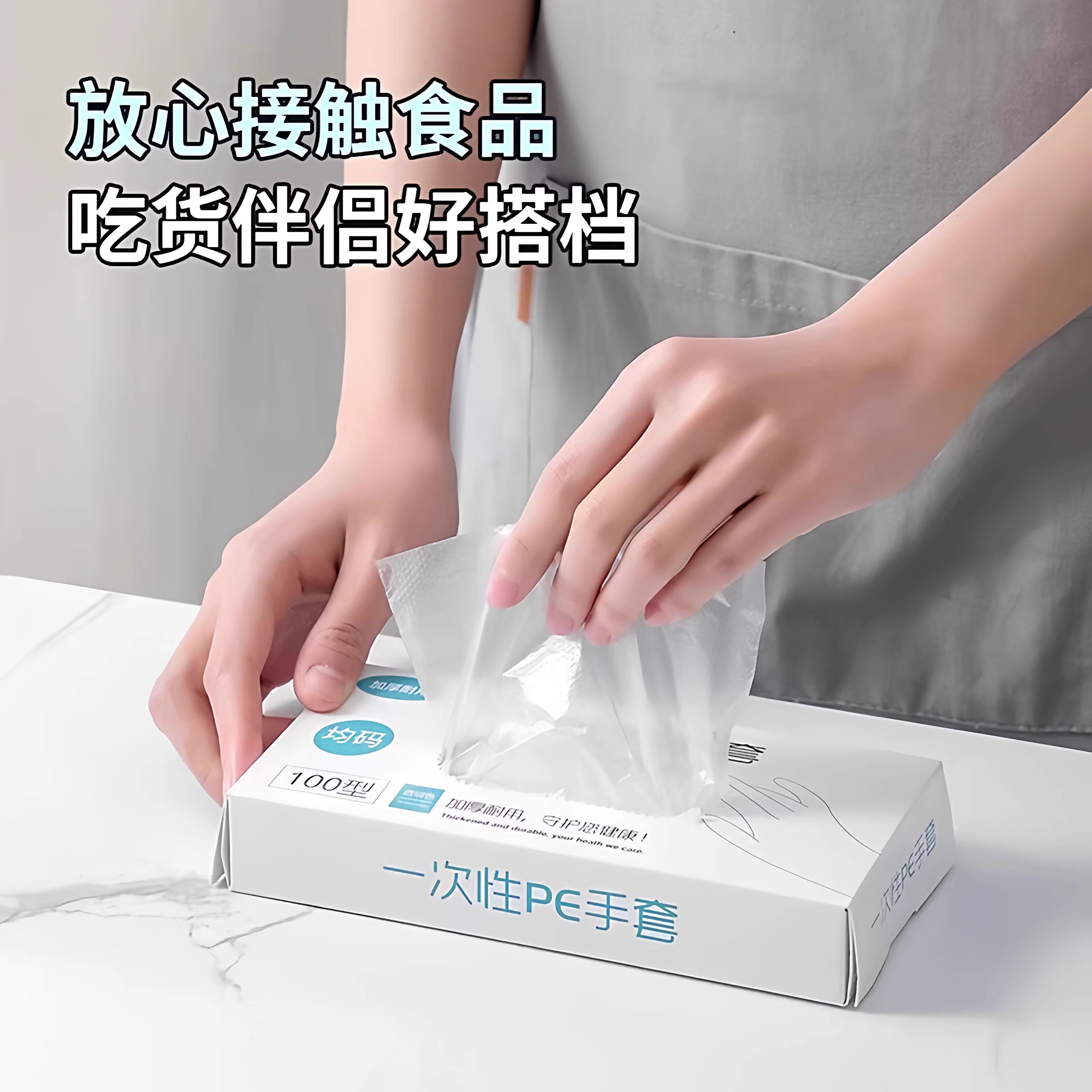 一次性手套pe食品级专用加厚耐用家用抽取式透明吃小龙虾餐饮盒装