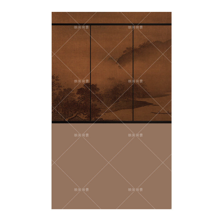 新中式古装请冷风摄影背景布山水画花鸟影楼古典婚纱全家福拍照