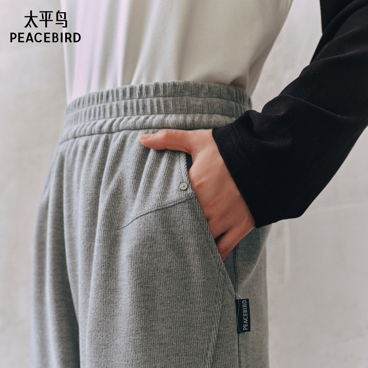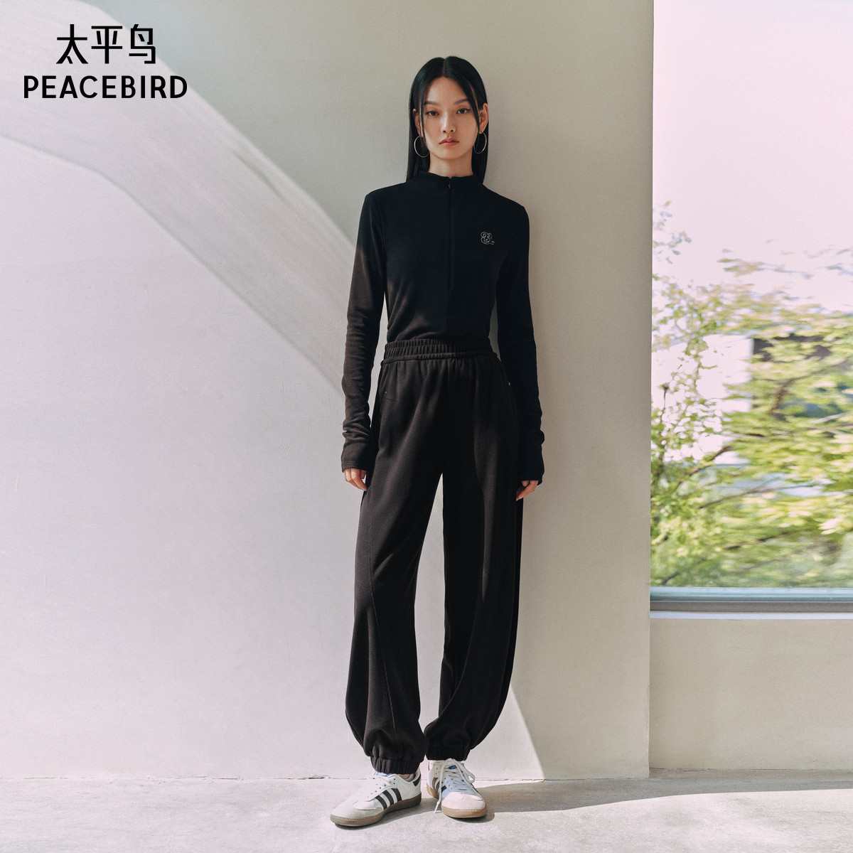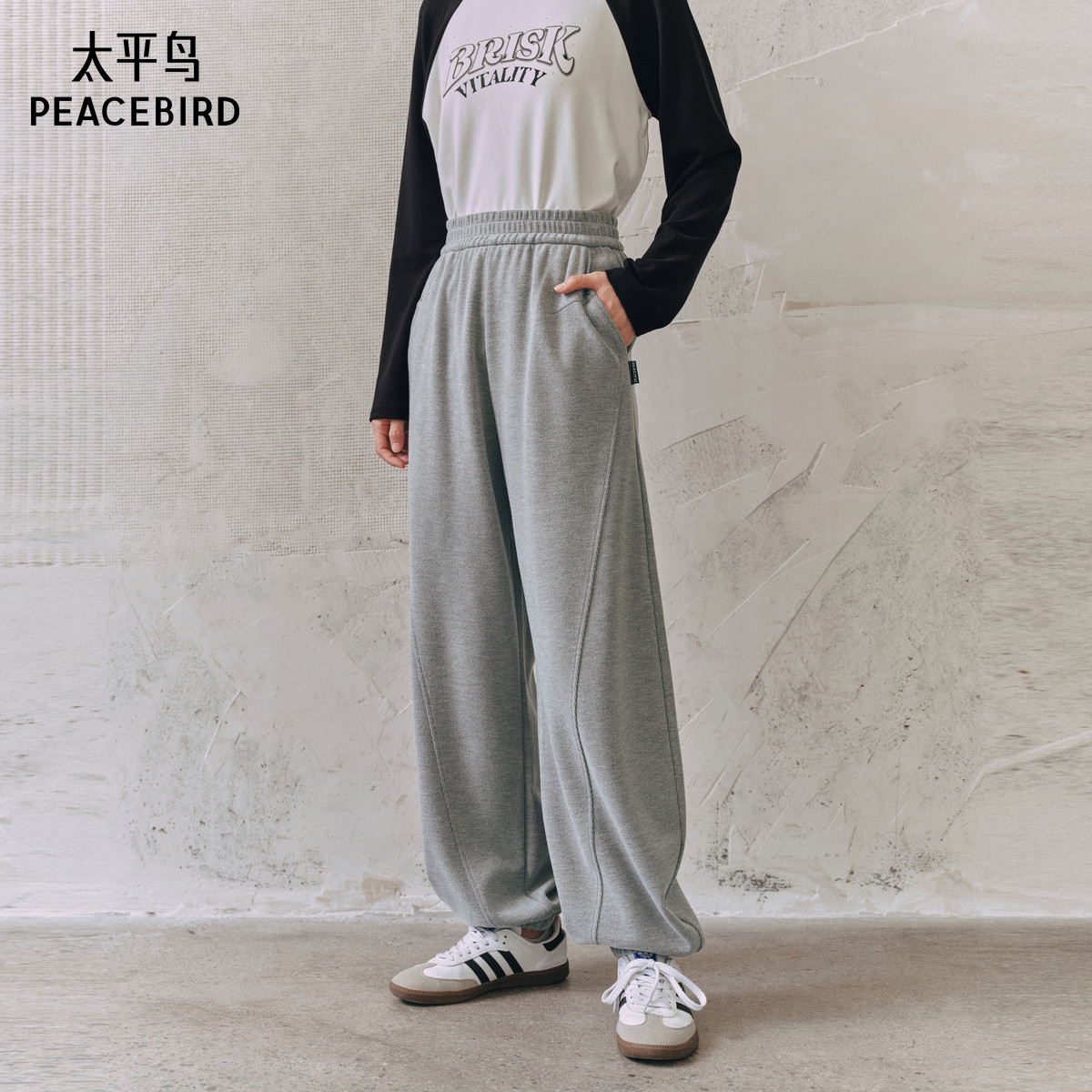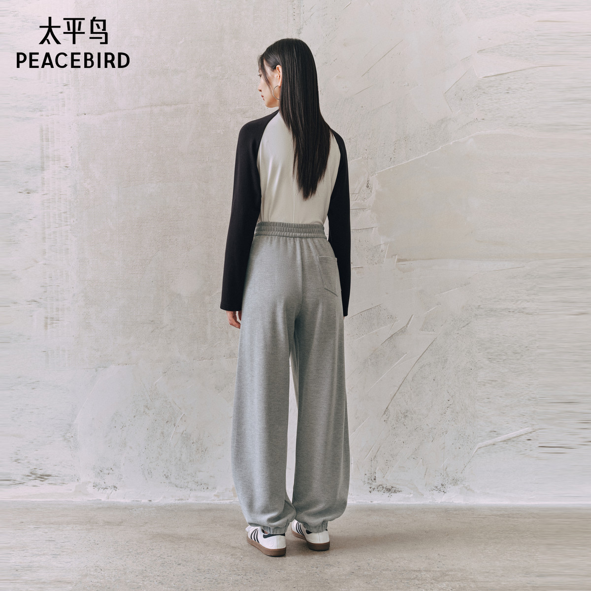 太平鸟高腰针织弯刀束脚卫裤2024秋冬款磨毛宽松显瘦运动休闲裤*