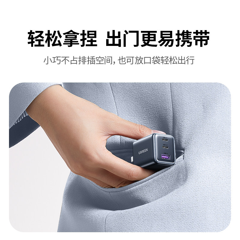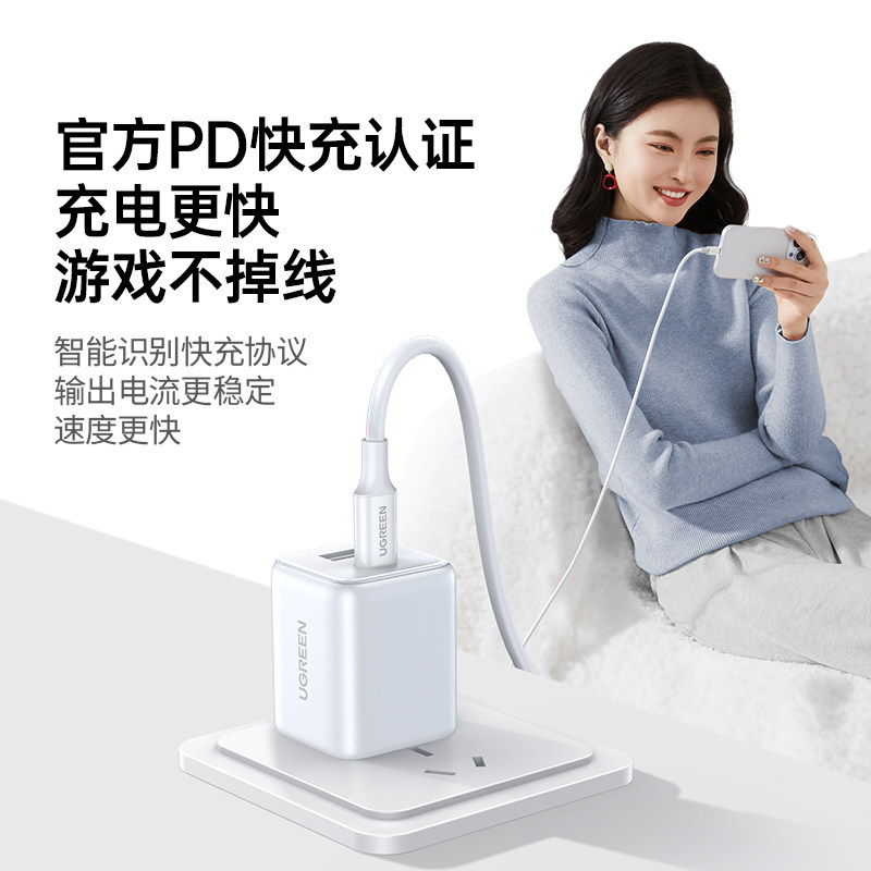 绿联30W多口充电器线适用苹果华为小米iPhone17pro双口充电头安卓手机氮化镓快充16通用typec插头1a1c三口usb
