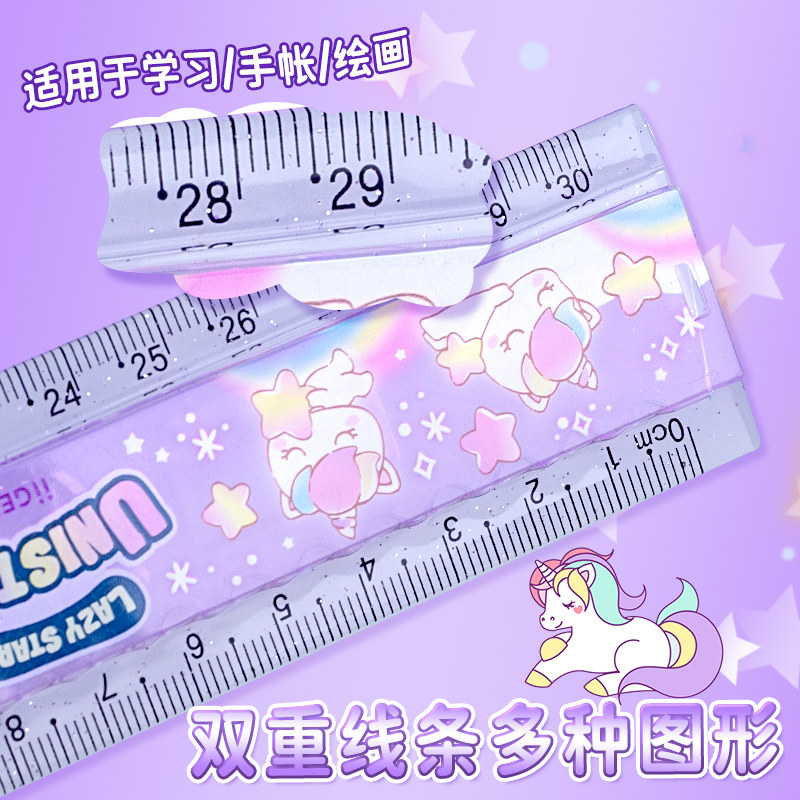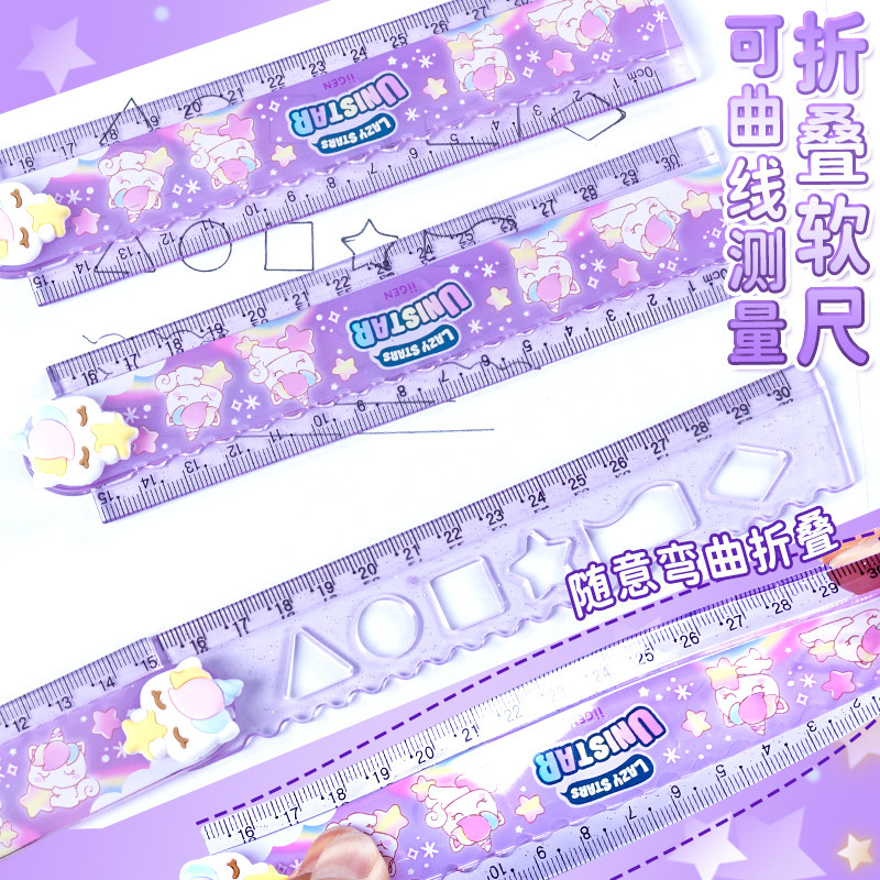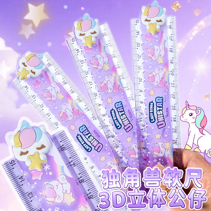 一正独角兽多功能折叠软尺可爱立体公仔造型变形尺子小学生专用高颜值30cm软尺子直尺卡通柔软折叠尺带波浪线
