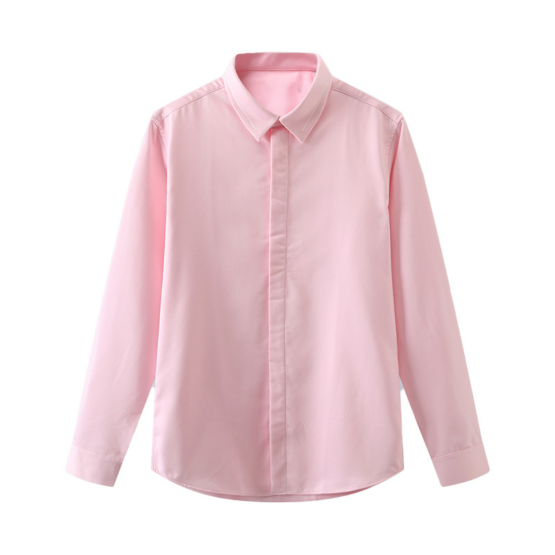 外贸大牌撤标加绒粉色衬衫男士长袖商务正装西装寸衫衬衣男修身
