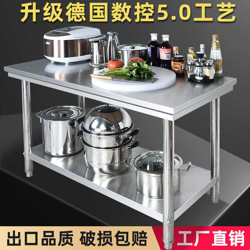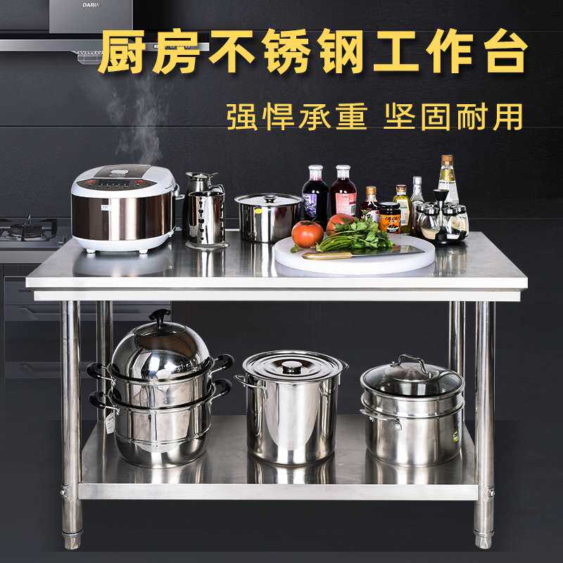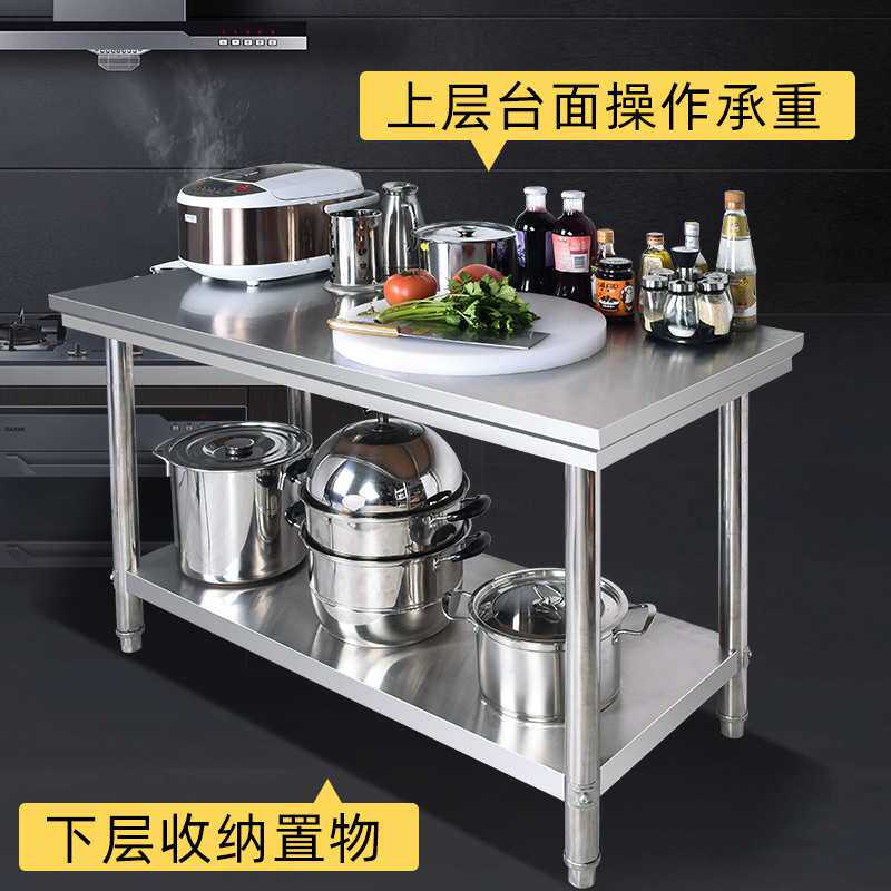 饭店厨房长方形加厚双层不锈钢工作台商用切菜案台操作台桌子