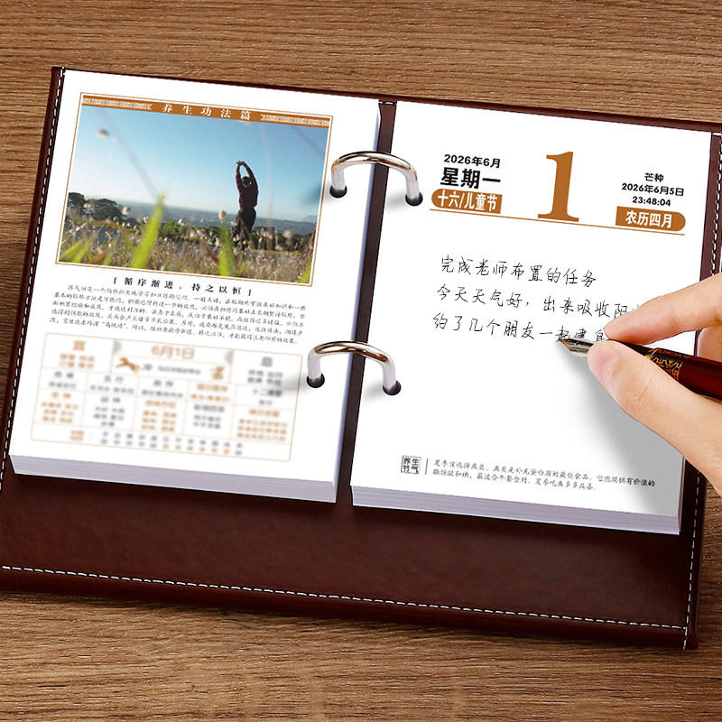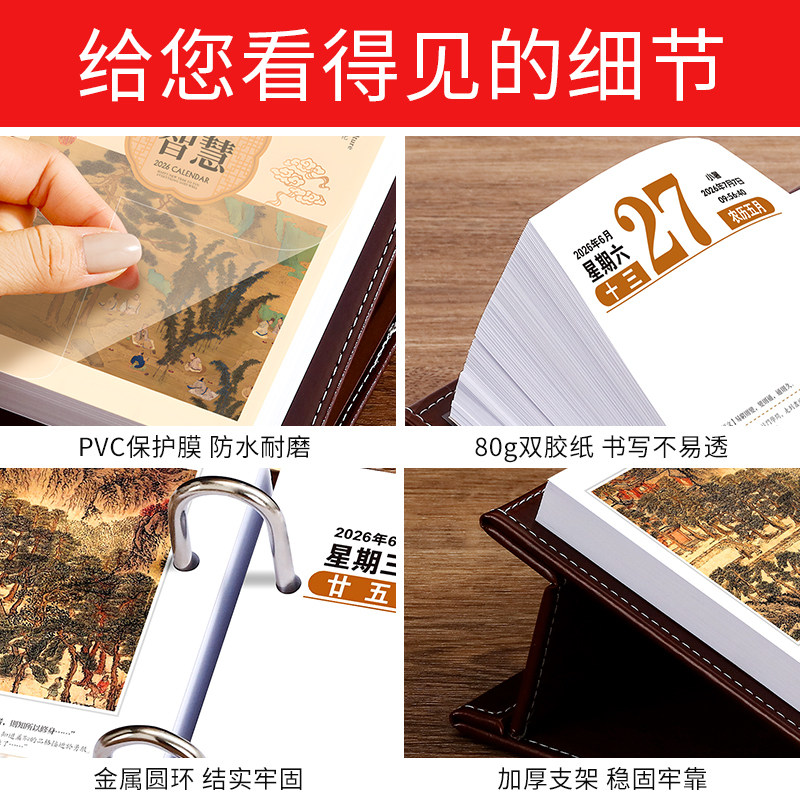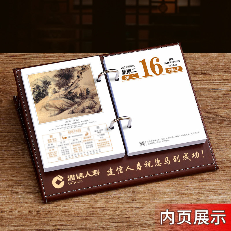 2026年日历定制logo马年新款创意桌面摆件记事月历礼盒装商务办公室皮质翻页每日一页计划本手撕工作单页台历