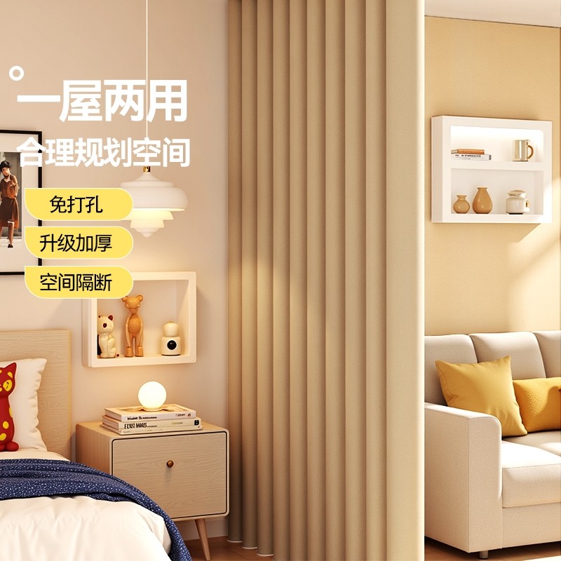 窗帘2025新款轻奢简约客厅隔断帘加厚遮光飘窗阳台防晒帘纯色落地