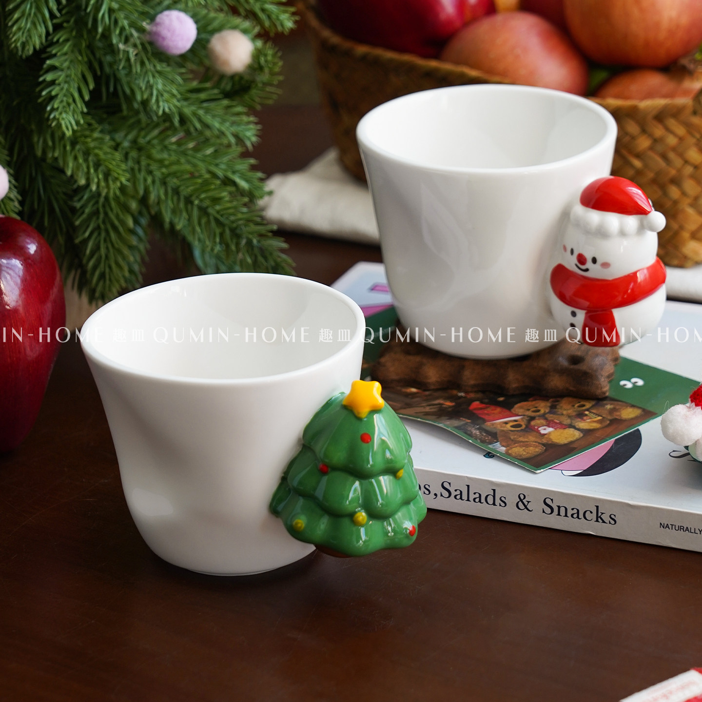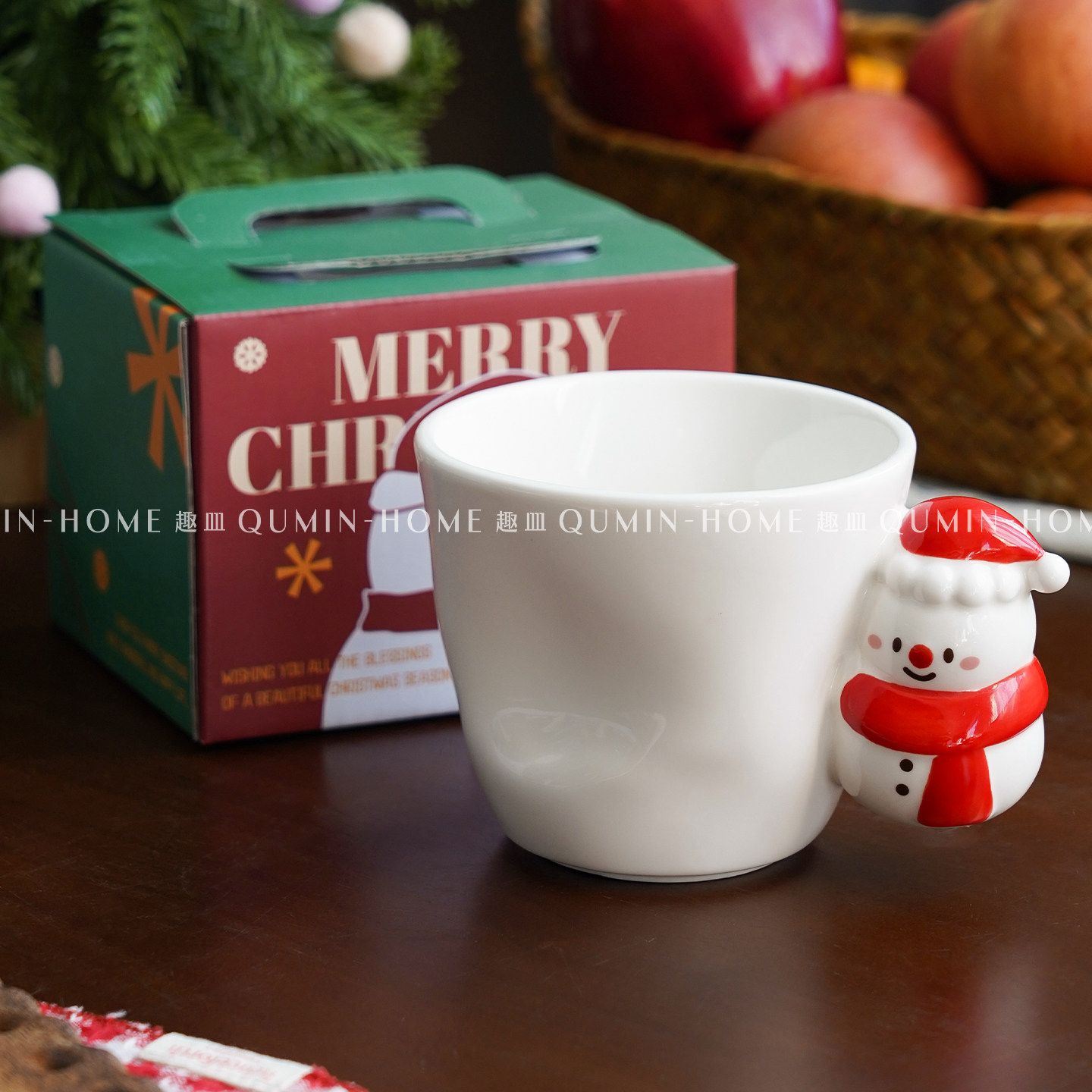 趣皿雪人把手杯圣诞礼品马克杯带礼盒可爱水杯咖啡杯陶瓷杯情侣杯