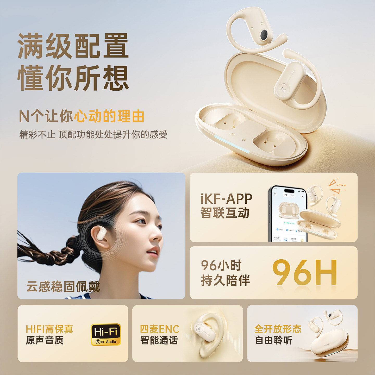 iKF Ego蓝牙耳机挂耳式无线不入耳式气传导运动跑步专用超长续航