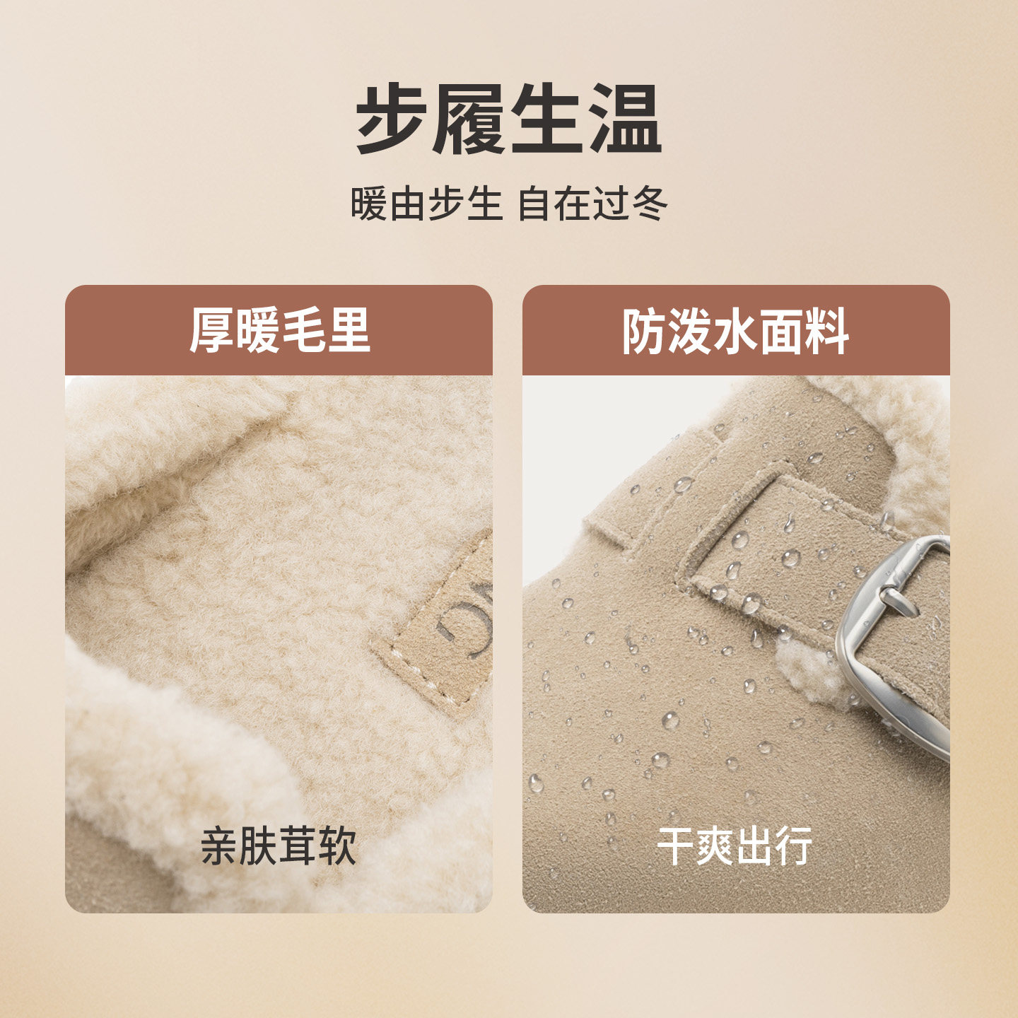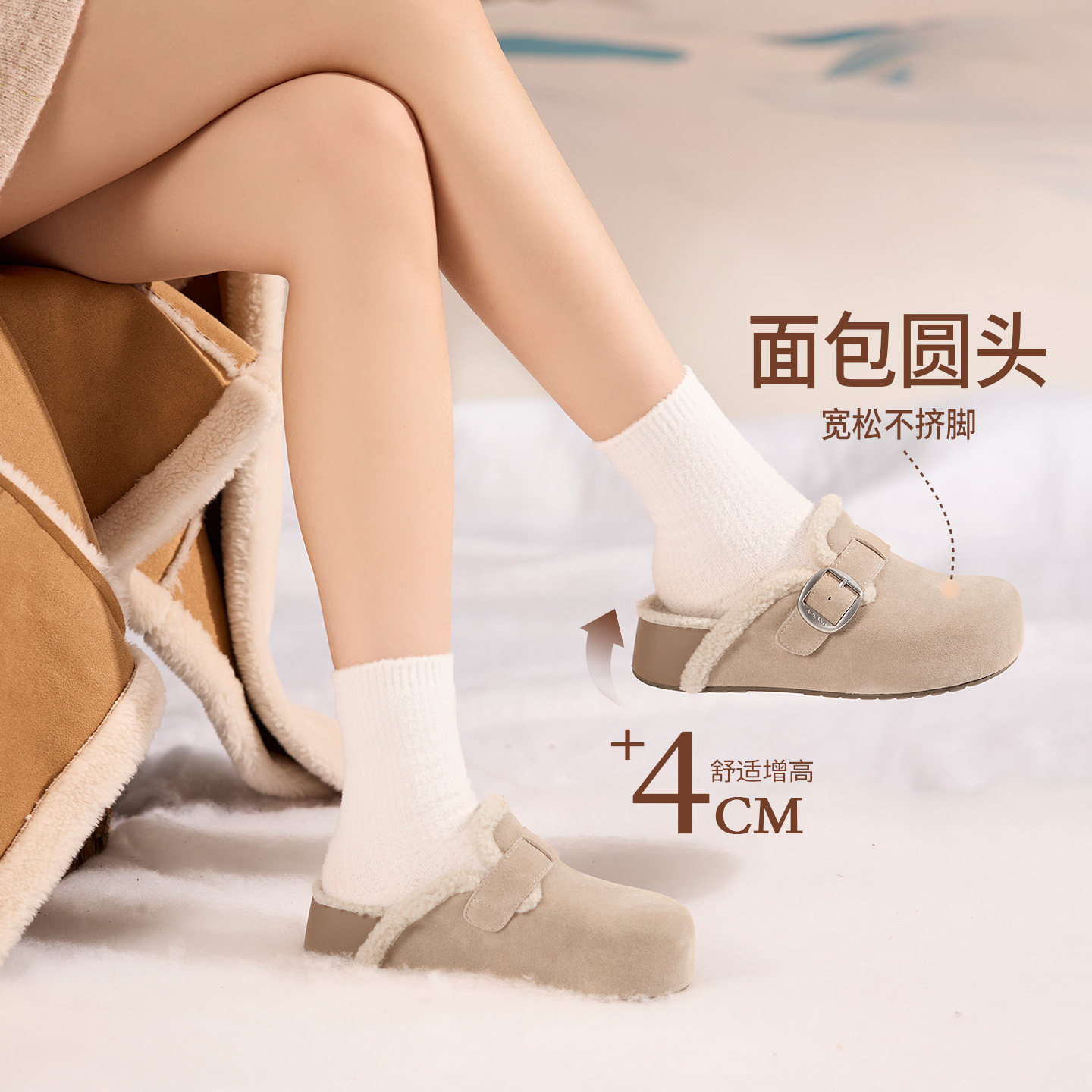 奥康 女鞋2025冬季新款增高勃肯鞋复古雪地靴保暖毛毛鞋包头外穿