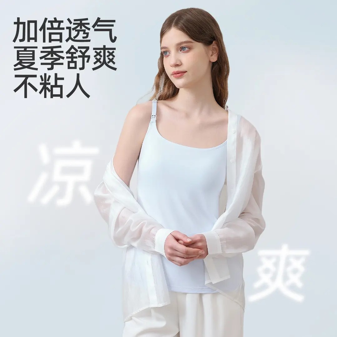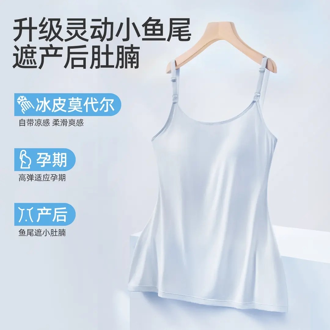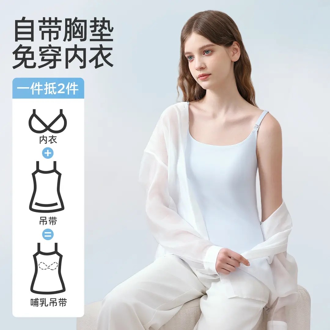【鱼尾小冰皮】婧麒哺乳吊带背心新款夏薄款带胸垫免穿文胸上衣