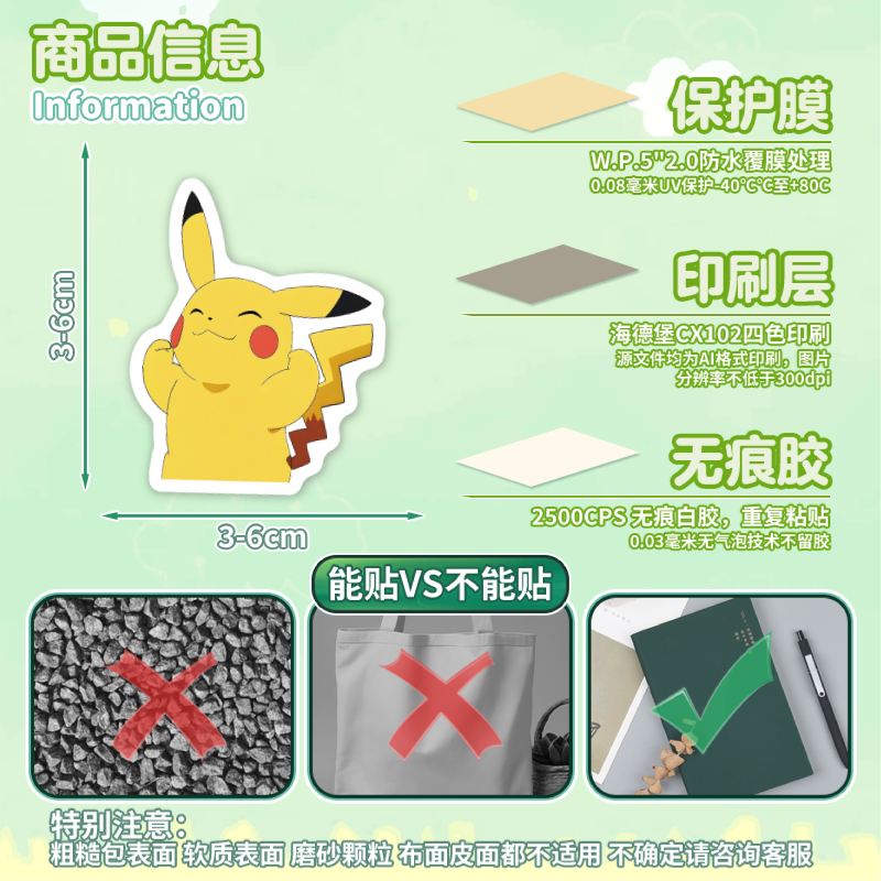 迷你皮卡丘贴纸儿童装饰行李箱贴纸不干胶diy手账手机电动车防水贴纸贴画