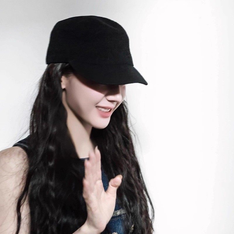 明星同款麂皮绒平顶马术帽女冬季日系复古黑色百搭显脸小贝雷帽子