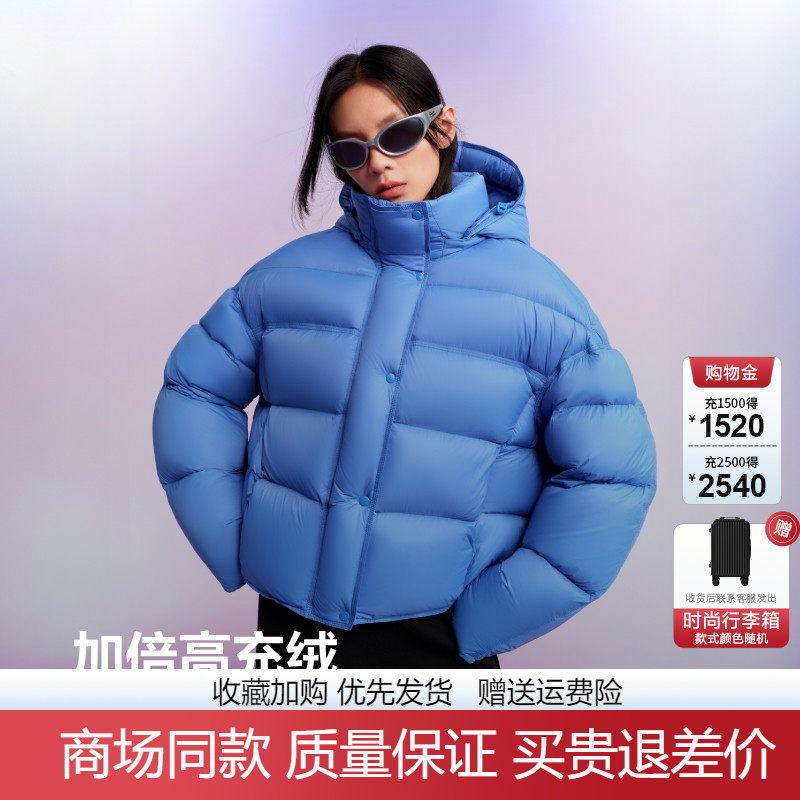 鸭鸭2025秋冬新款立领短款羽绒服小个子女冬多巴胺连帽可拆帽外套