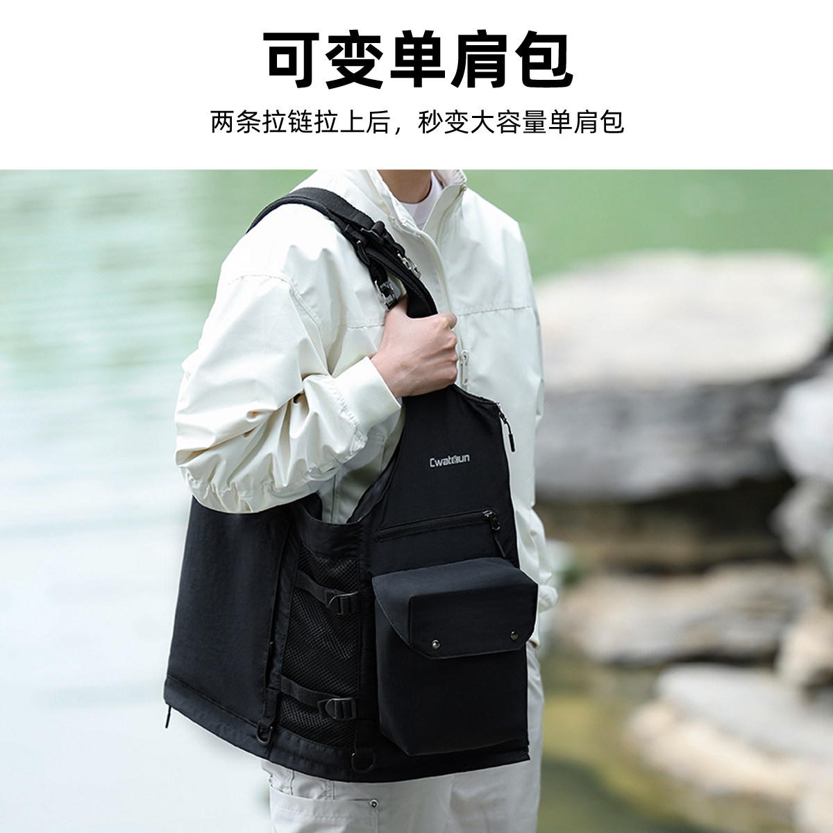Cwatcun香港卡登专业摄影马甲相机包收纳包户外背心战术快取微单反镜头包减压防水背带适用索尼康佳能R10富士