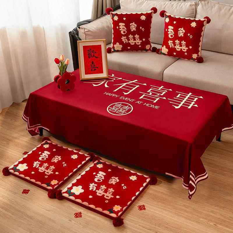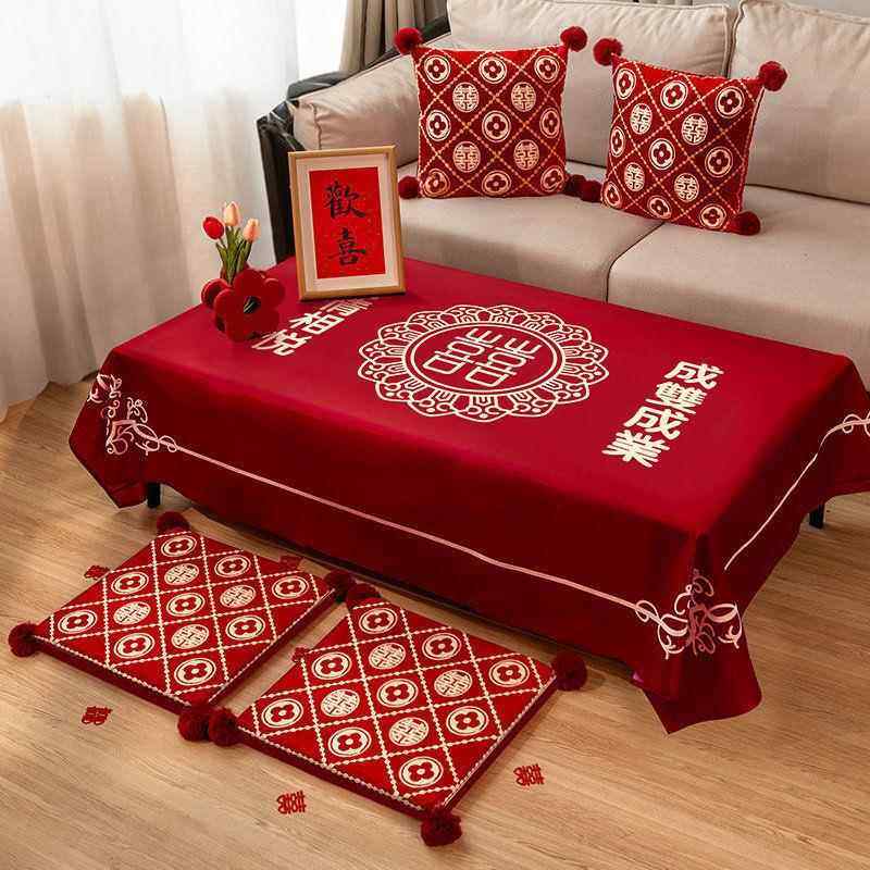 结婚客厅茶几装饰布置桌布桌旗喜字订婚婚礼餐桌盖布红色喜庆用品