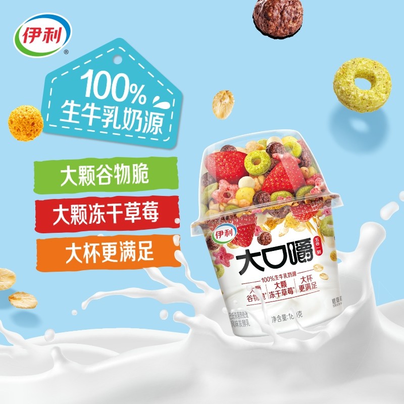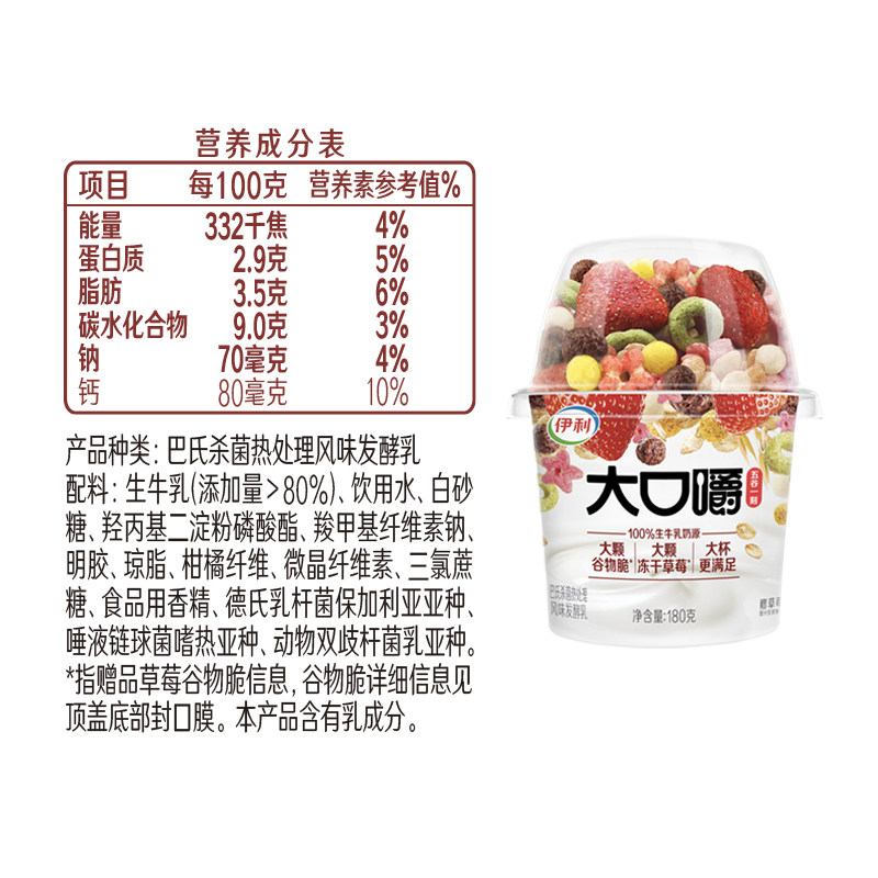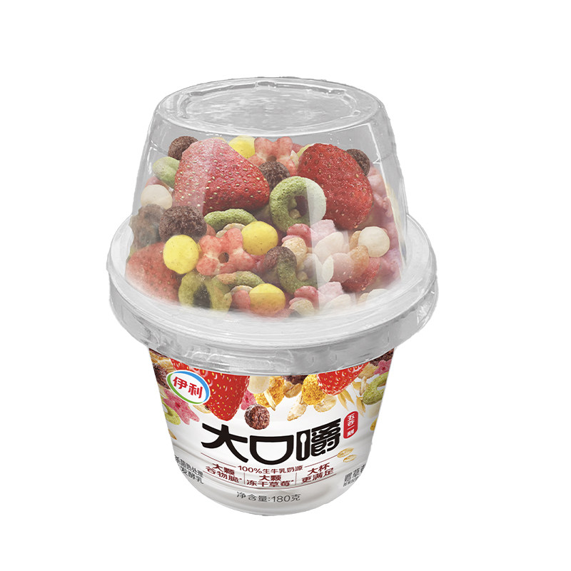 伊利大口嚼搅拌酸奶杯180g草莓燕麦片谷物旗舰酸牛奶生牛乳冻干