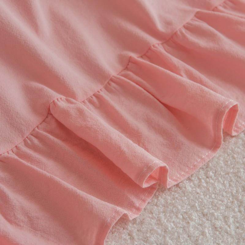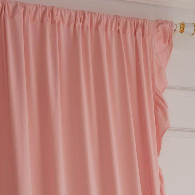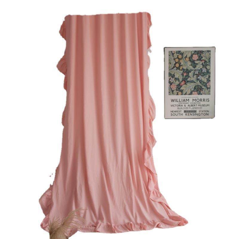 乐轩秀新品窗帘粉色公主风荷叶边免打孔飘窗窗帘婚庆背景布艺帘