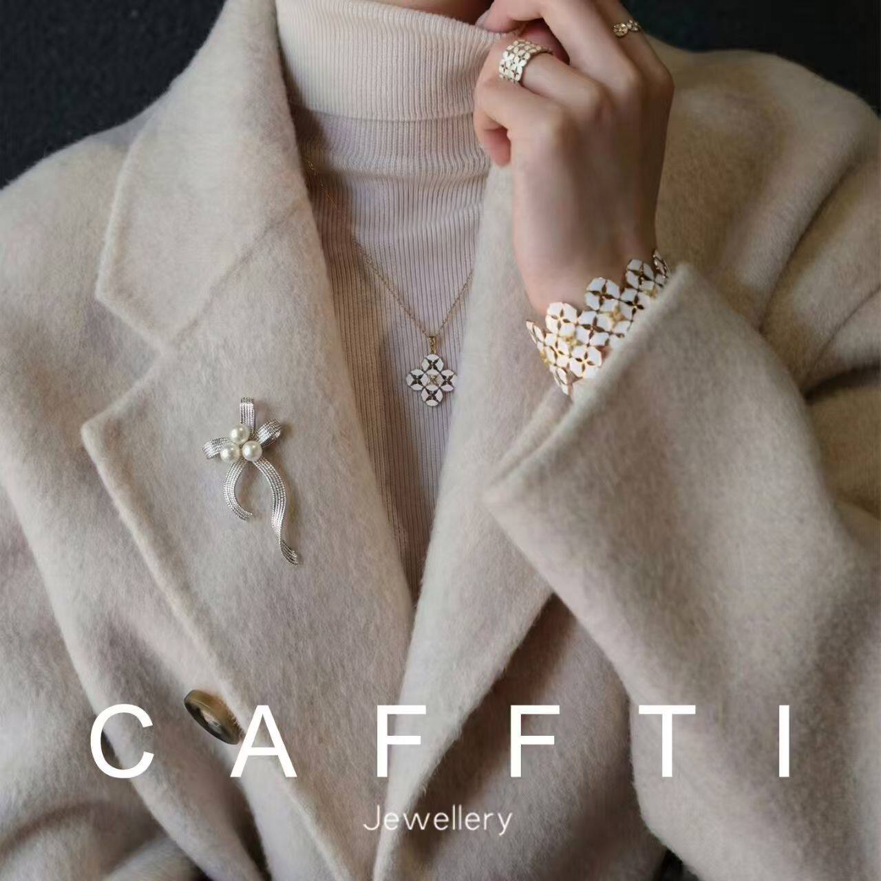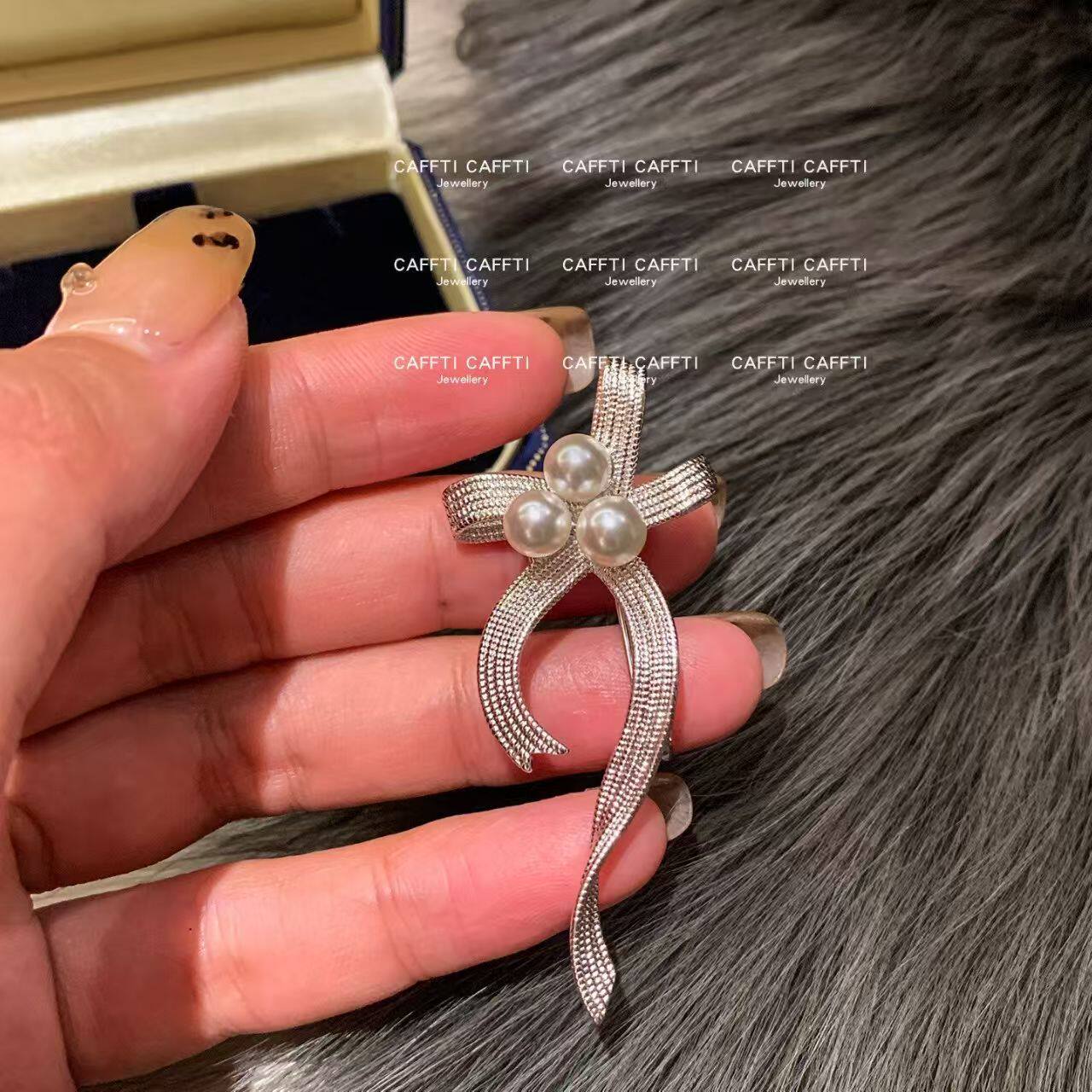 小香风蝴蝶结羊绒大衣珍珠胸针女配大衣高级感设计感小众胸花西装