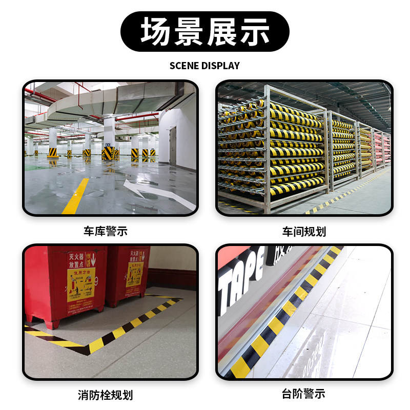 PVC黄色胶带高耐磨警示地胶带强力加厚防水胶带警示胶带装修施工车位贴纸划线地标线消防通道线无尘车间标识