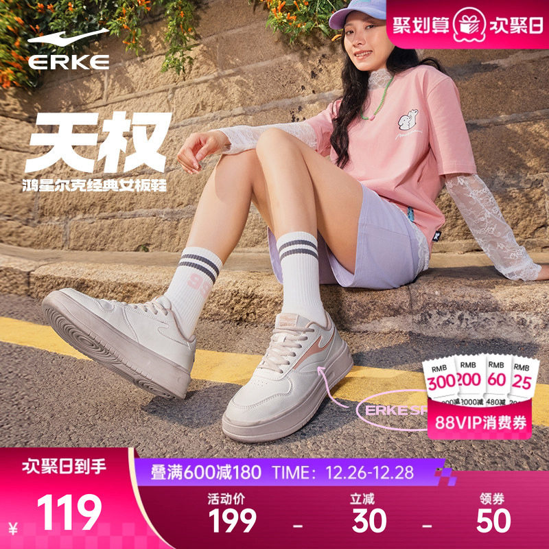 鸿星尔克板鞋女鞋冬季新款鞋子厚底增高小白鞋学生休闲百搭运动鞋