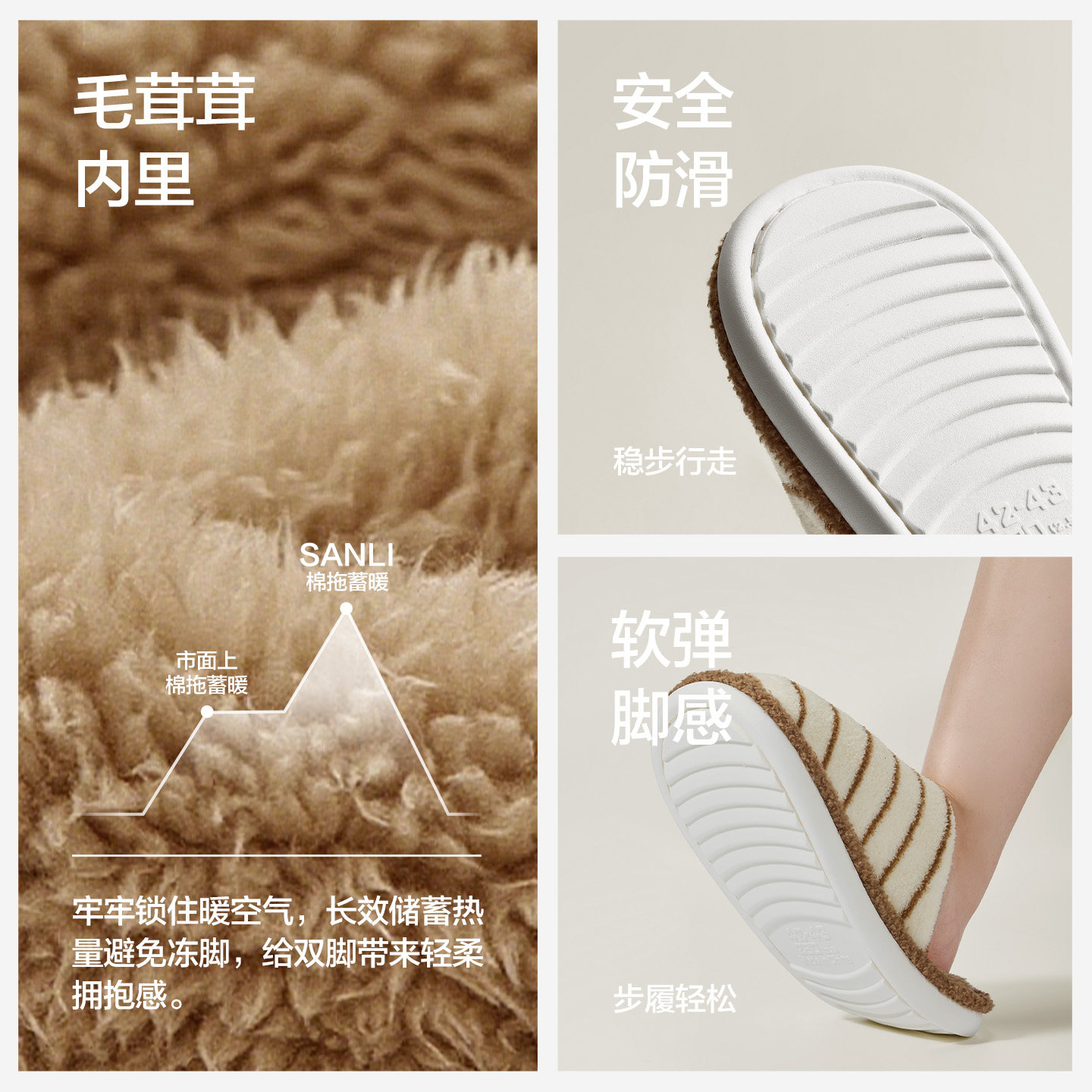 三利棉拖鞋女士秋冬季2025新款家居室内情侣防滑保暖加绒毛拖鞋男