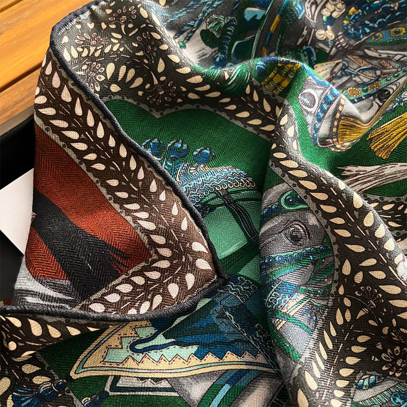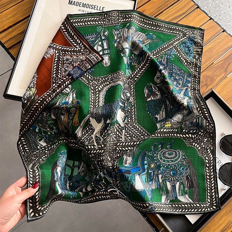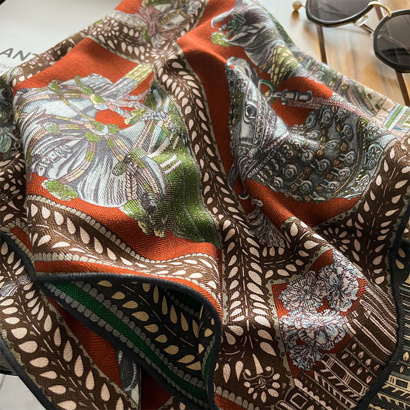清货1真丝羊毛双面双色轻奢骑士之舞70丝毛中方巾围巾女时尚优雅